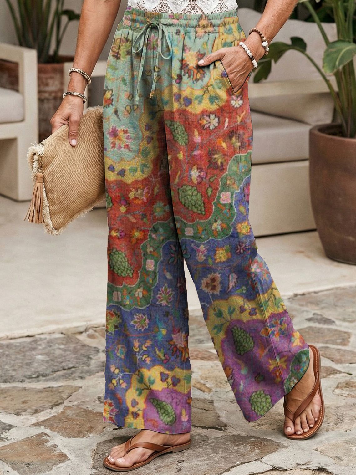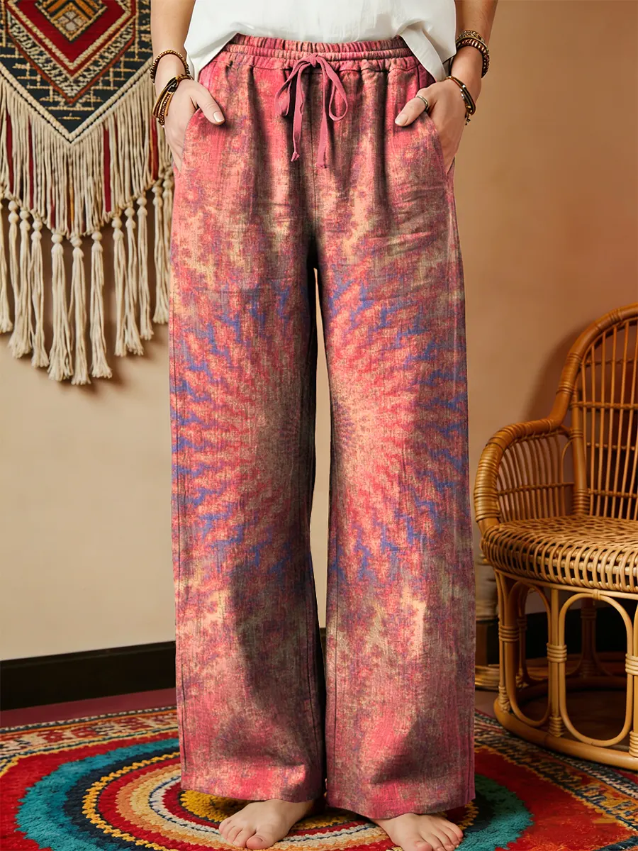 Vintage National Kaleidoscope Women's Printed Cotton And Linen Casual Pants$42.99 USD -