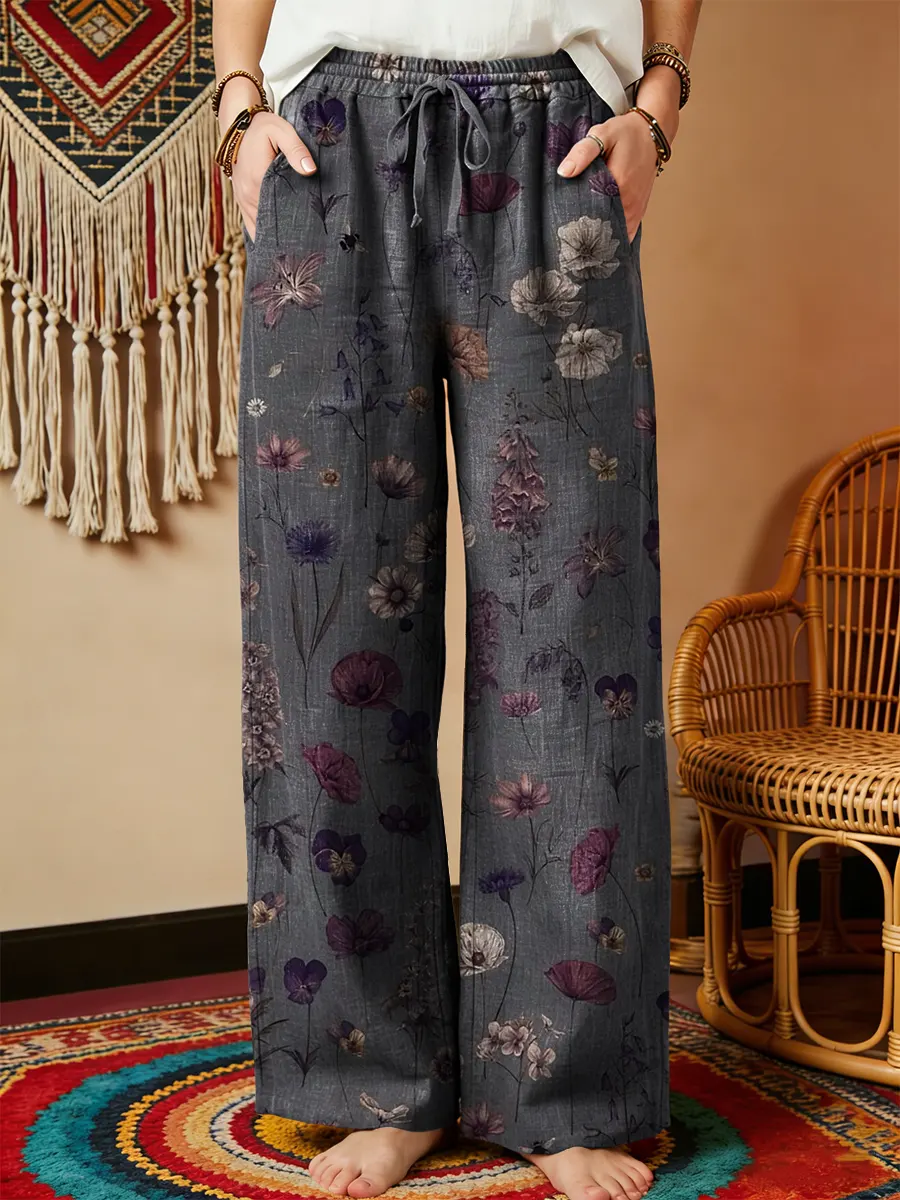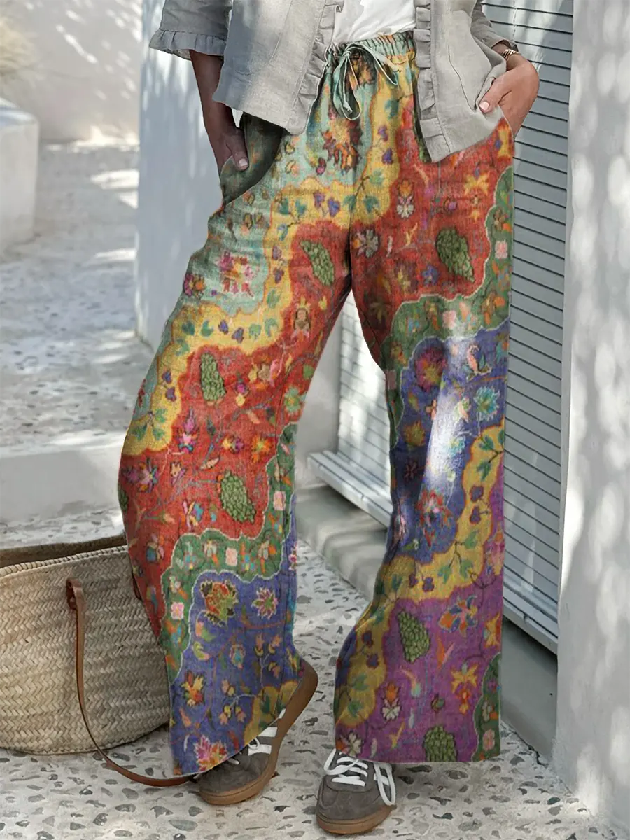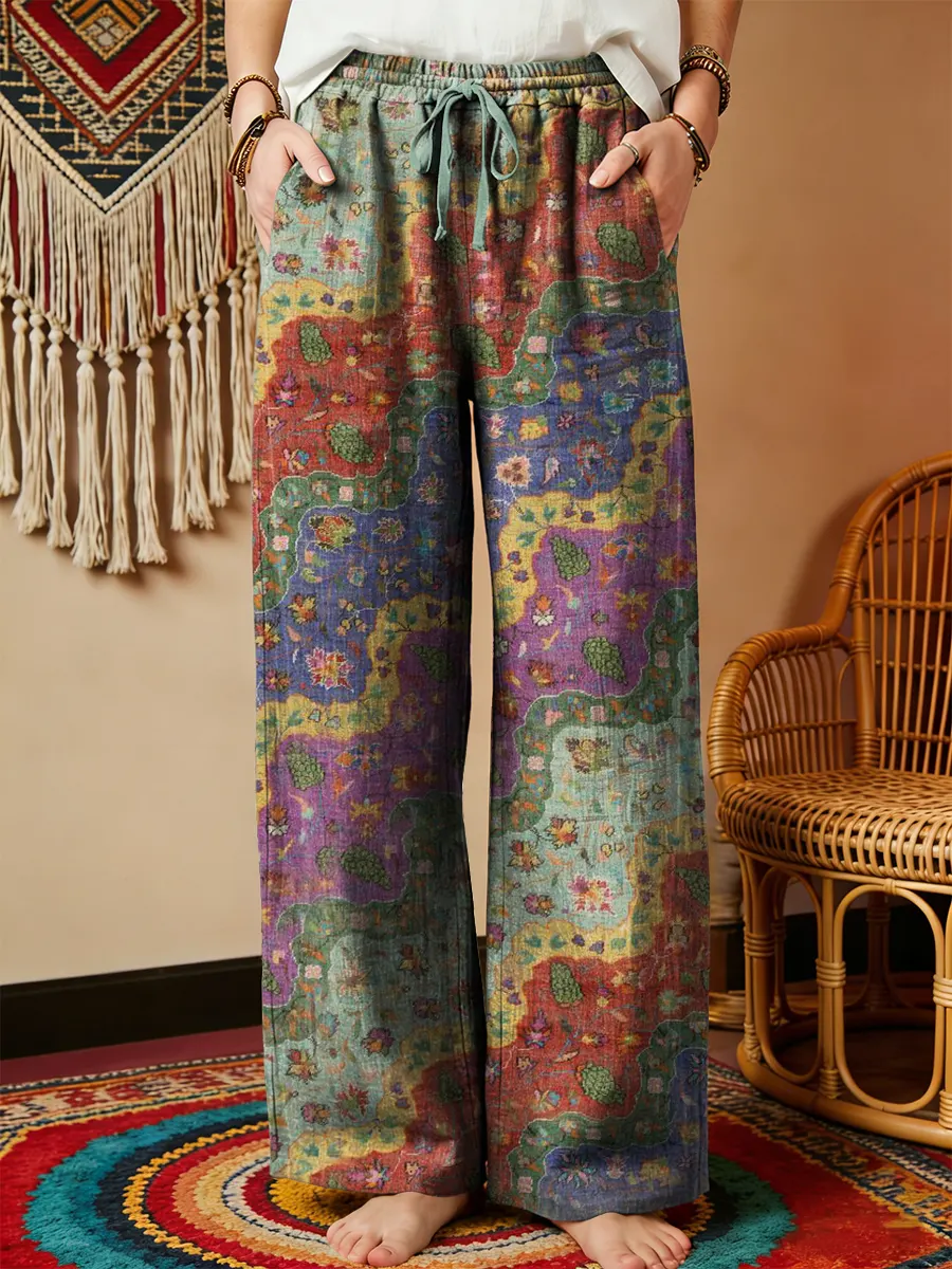 Women's Vintage Colorful Floral Art Print Cotton Linen Casual Pants$39.99 USD -