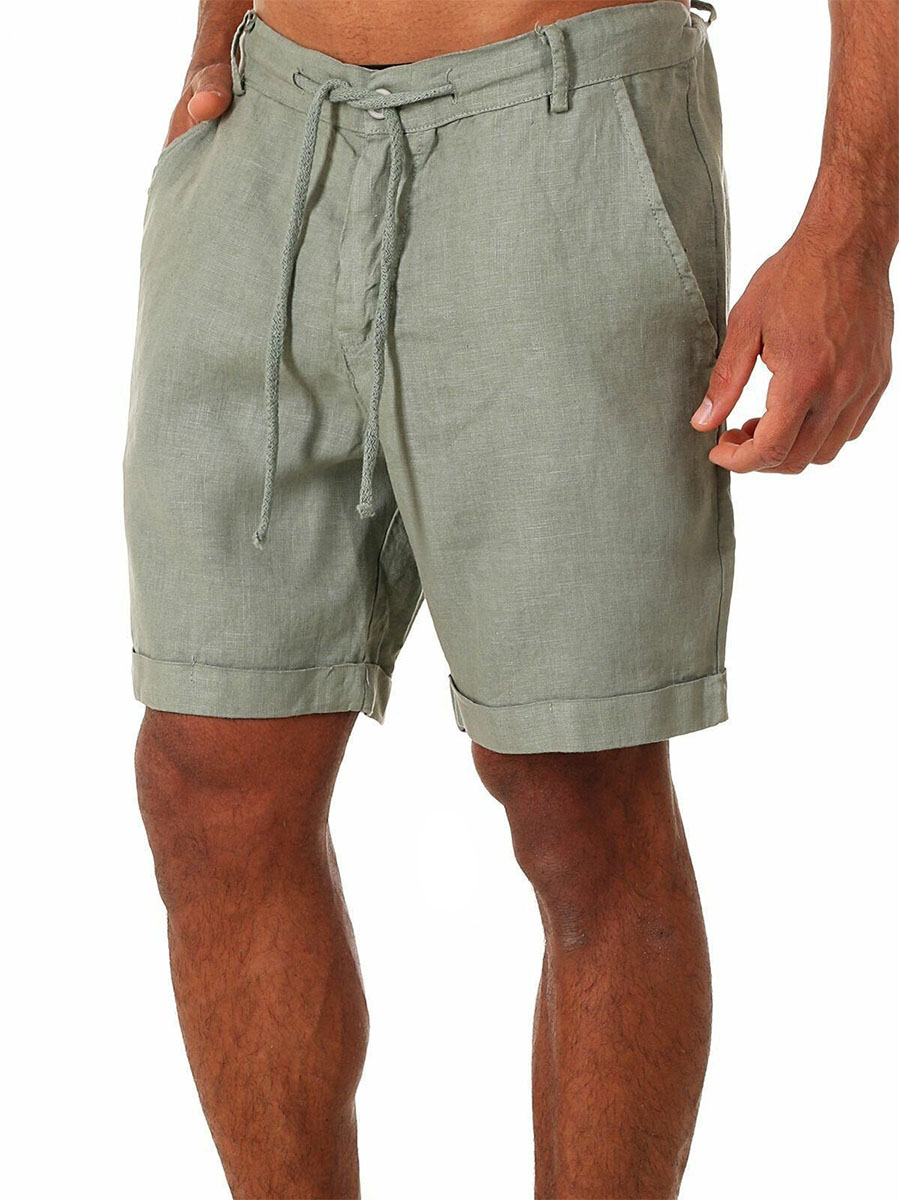 Men's Solid Color Lace Up Cotton Linen Casual Shorts
