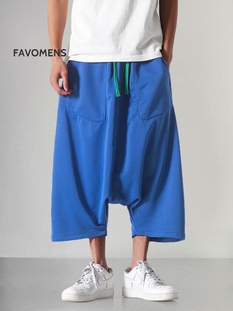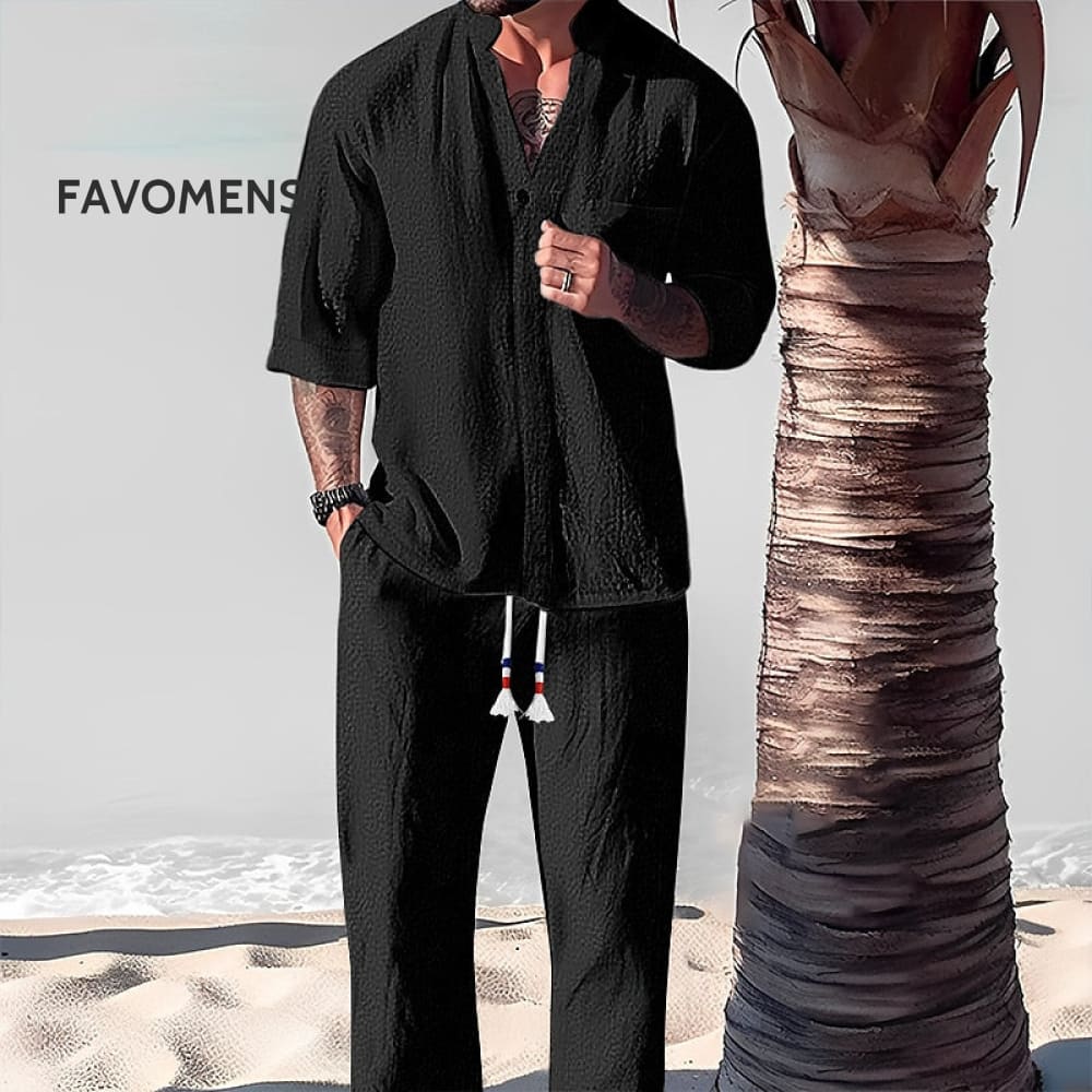 Men's Casual Solid Half Sleeve Blouse & Pockets Drawstring Pants 2Pcs Set