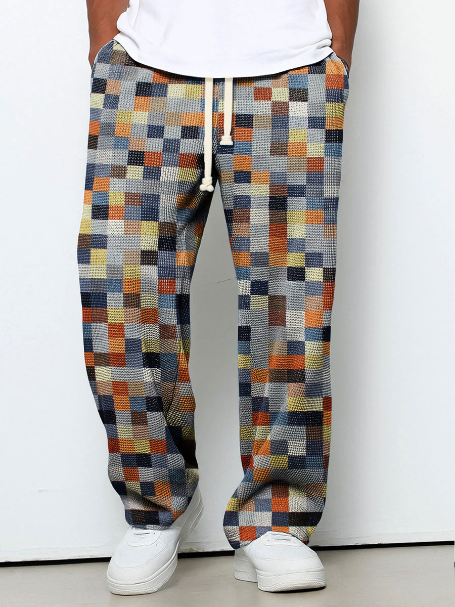 Retro Mosaic Square Geometry Print Casual Suit Pants