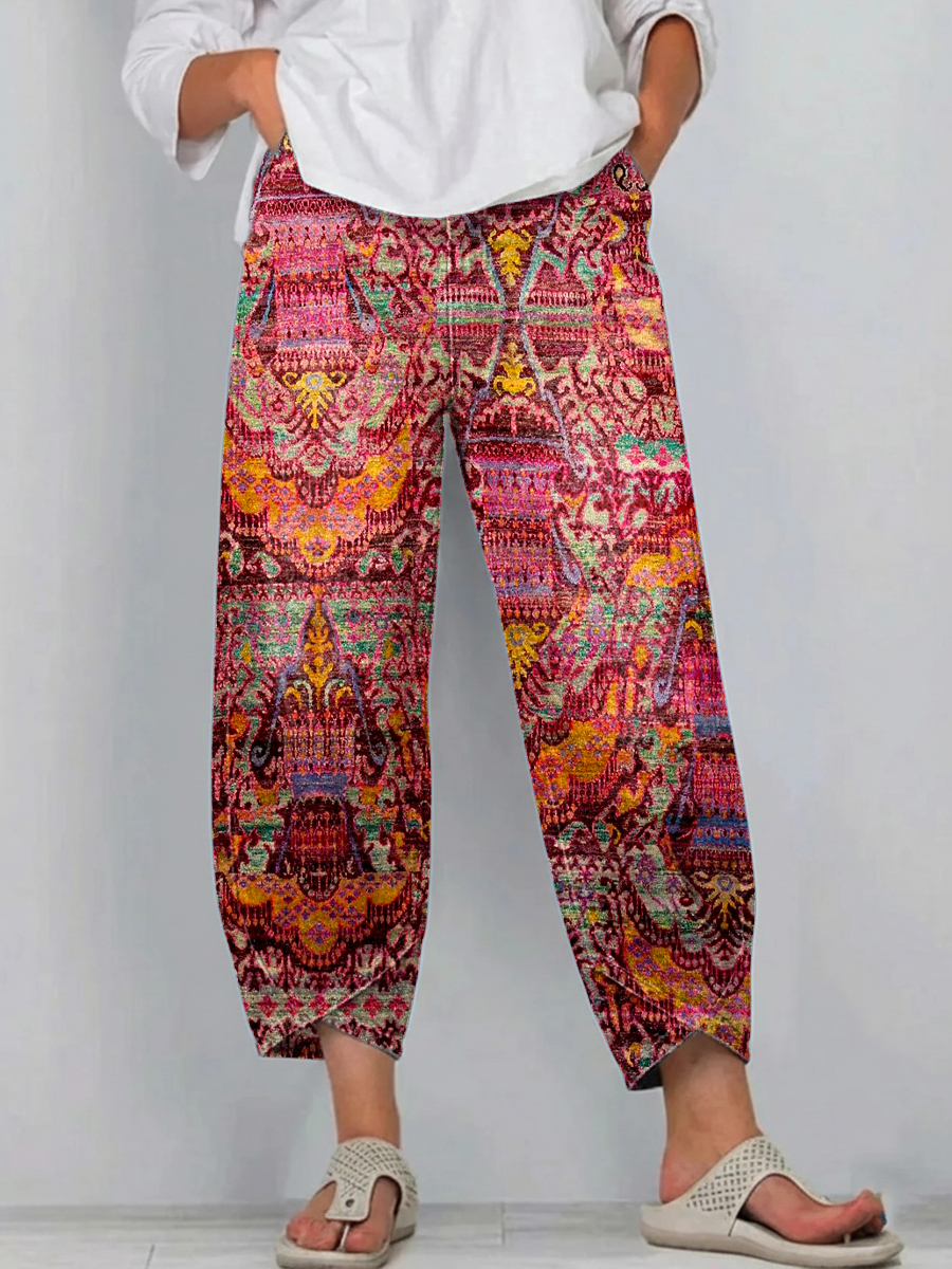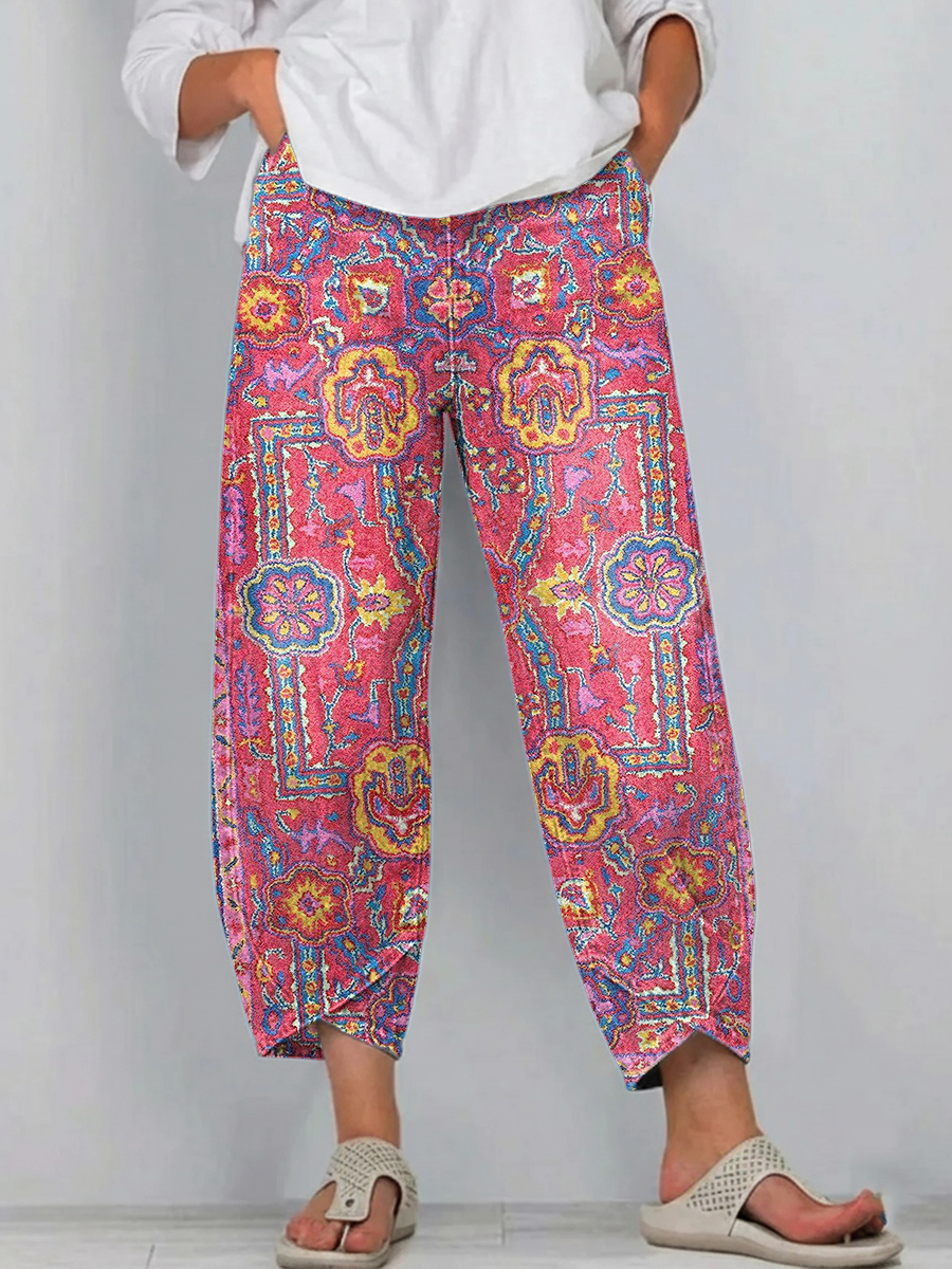 Women's Retro Colorful Ethnic Art Print Casual Washed Cotton Jeans
