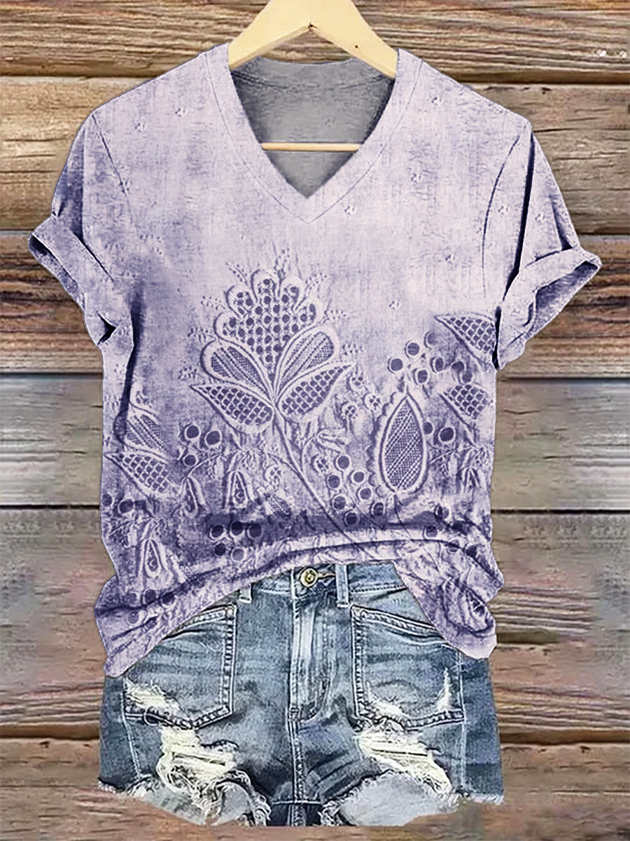 Women's Vintage Floral V-Neck Casual T-Shirt
