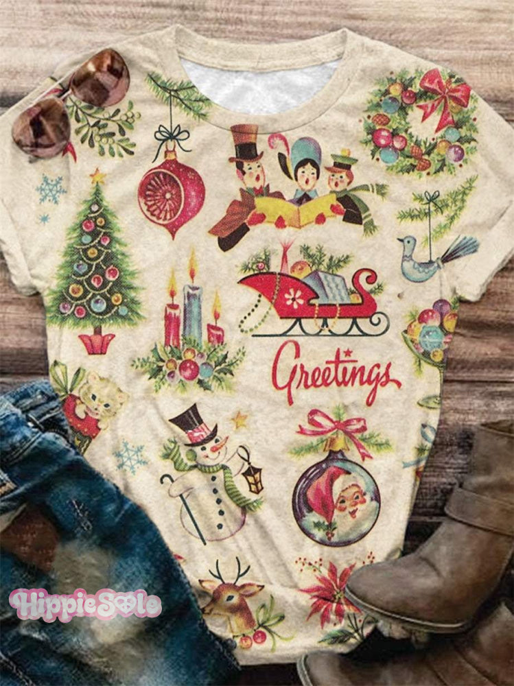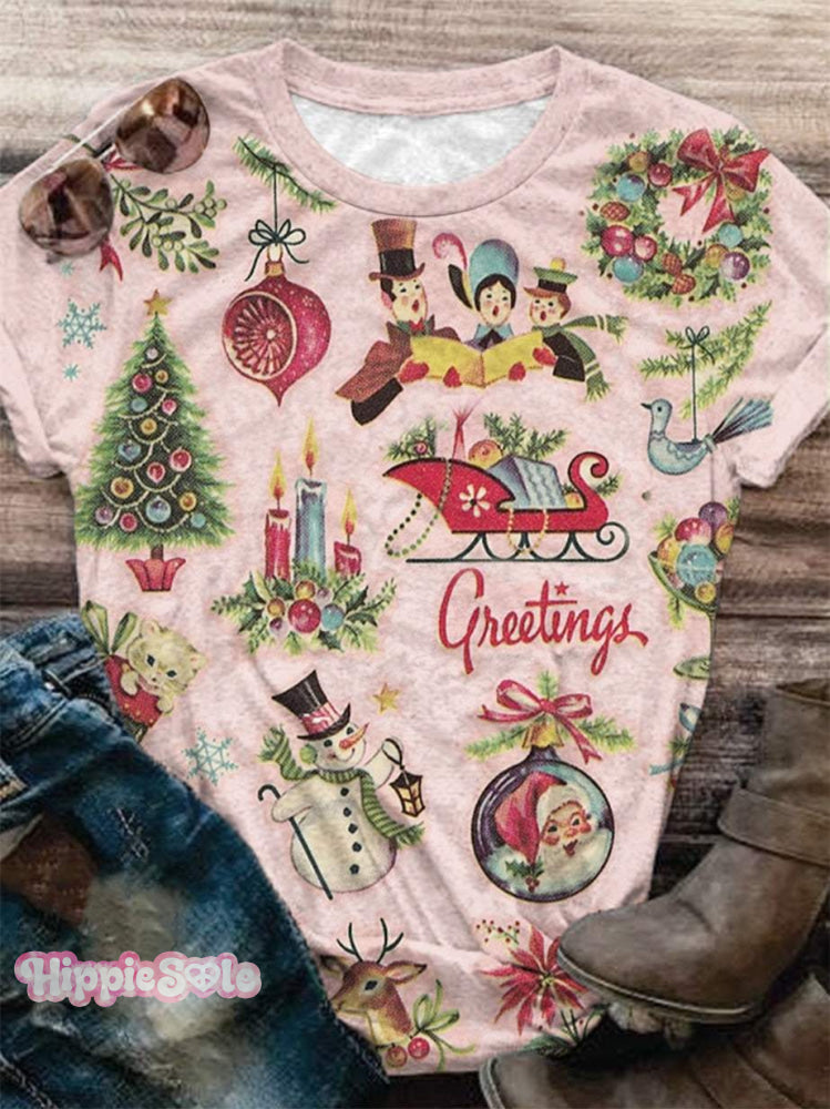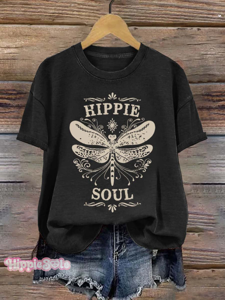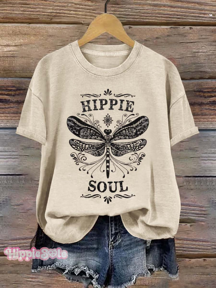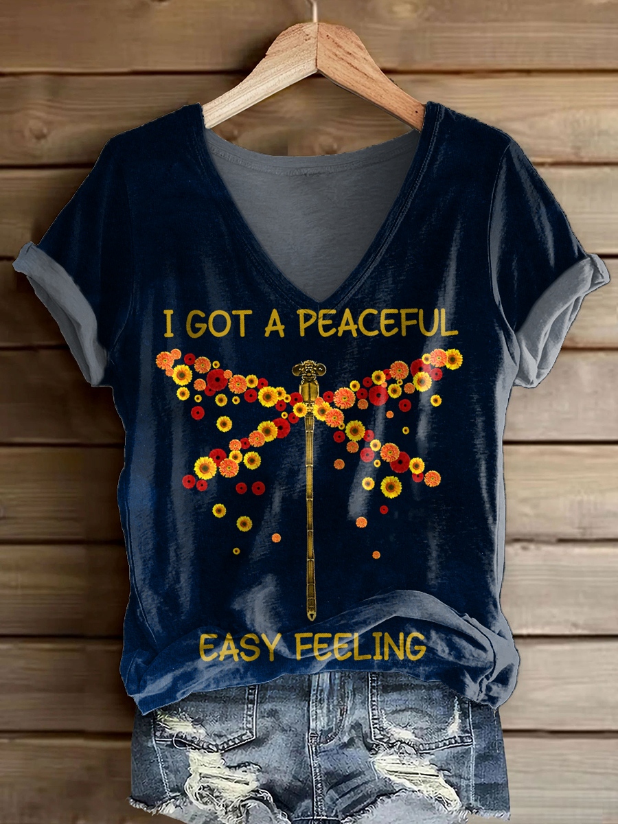 Women's Hippie I Got A Peaceful Easy Feeling Pattern Print V-neck Casual T-Shirt