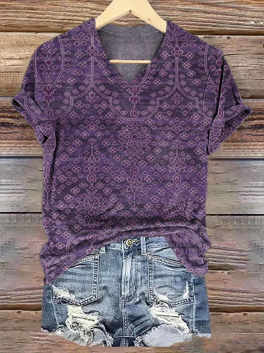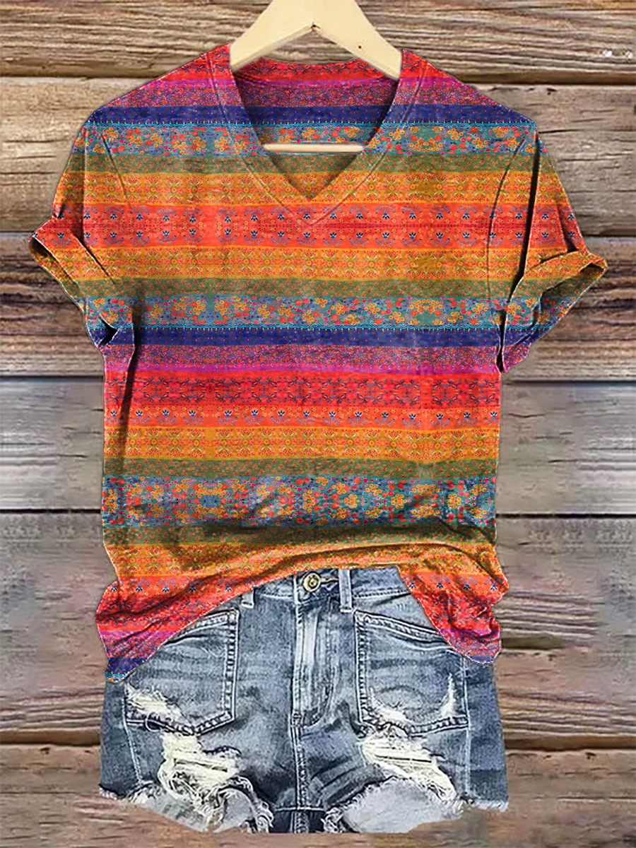 Women's Bohemian Ethnic Art Prints V-neck Casual T-Shirt