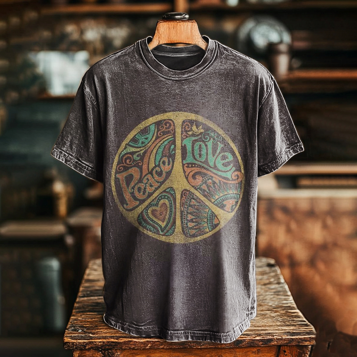 Hippie Peace Love Art Print Casaul Short Sleeve T-shirt