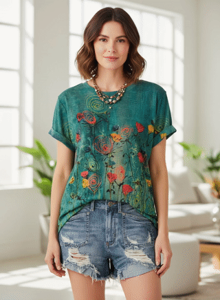 Vintage Floral Art Print Casaul Short Sleeve T-shirt