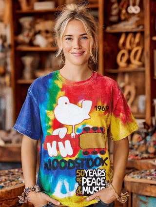 Unisex Woodstock 1969 Art Print Casual Loose Short Sleeve T-Shirt