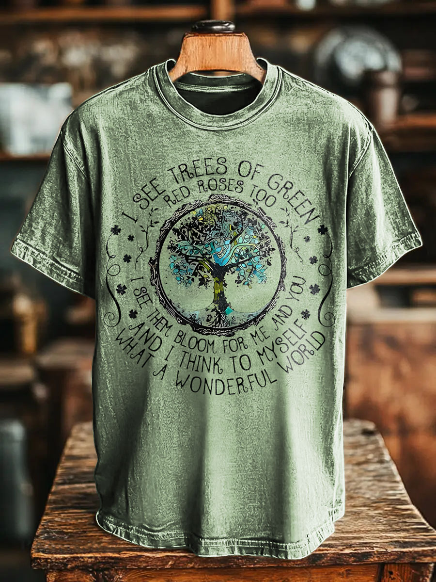 Trees of Green Wonderful World Hippie Vintage Art Print Casual T-shirt For Women And Men