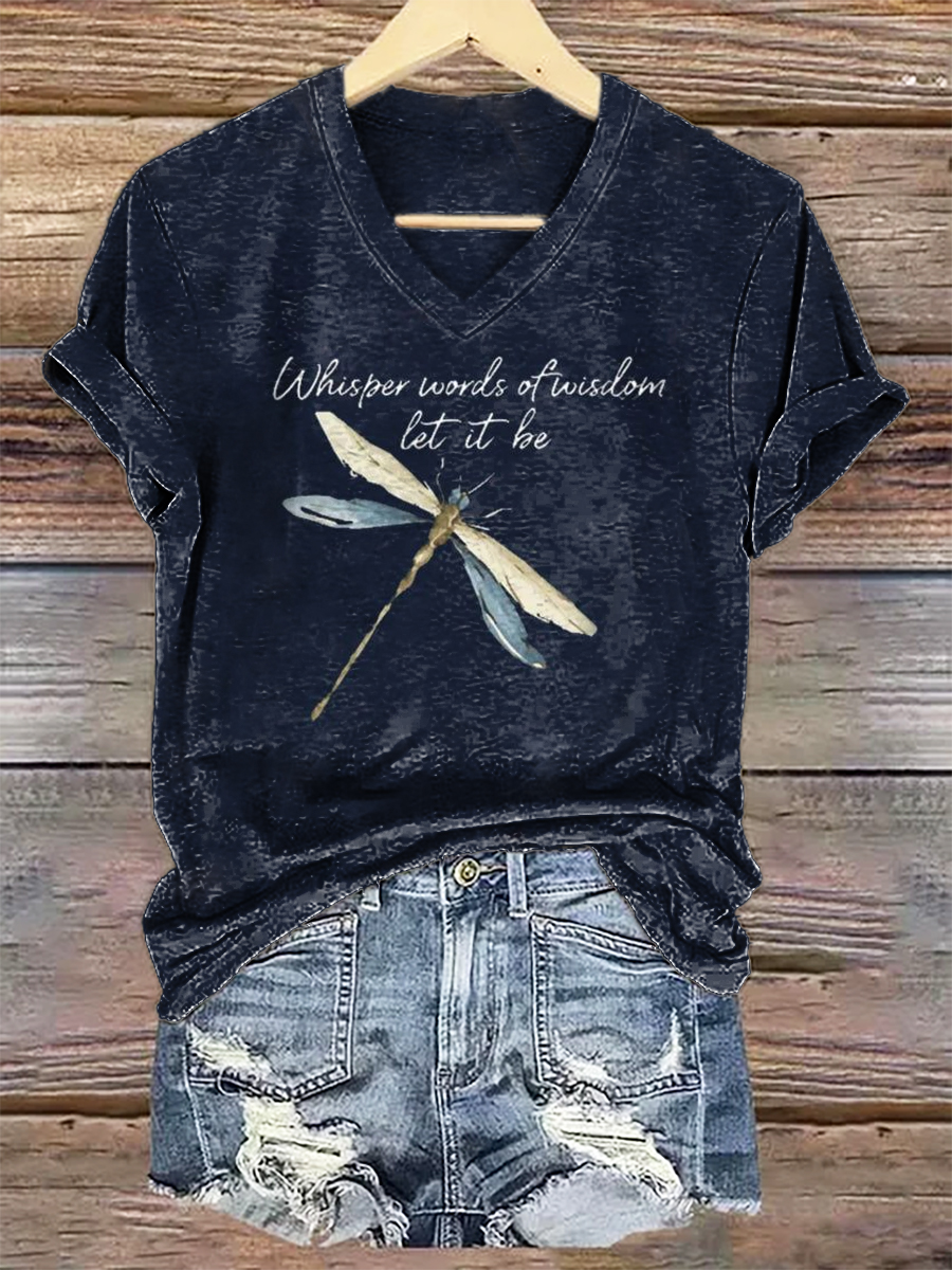 Women's Dragonfly V Neck Casual T-Shirt