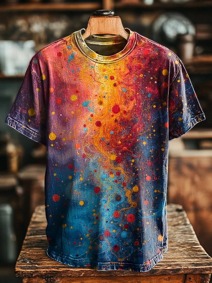 Unisex Vintage Colorful Line Polka Dot Print Casual Loose T-Shirt
