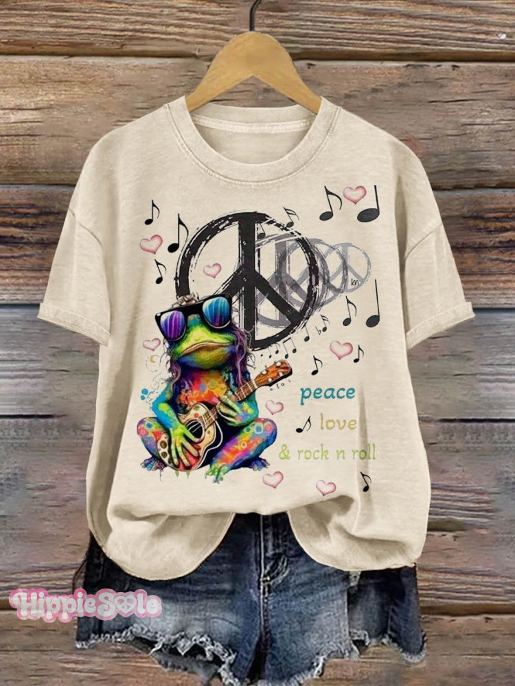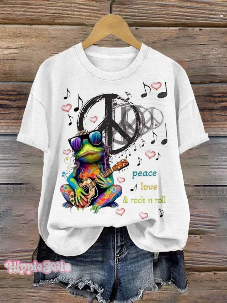 Peace And Love Rock Roll Frog Art Print T-shirt