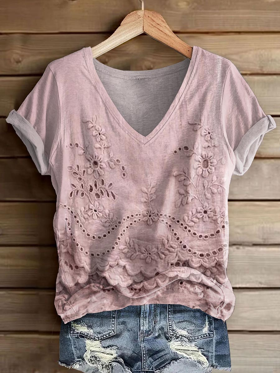 Women's Vintage Floral V-Neck Casual T-Shirt