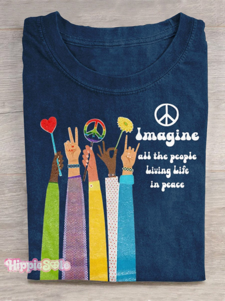 Imagine All The People Living Life in Peace Art Print Casual T-shirt