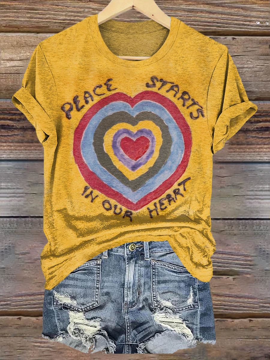 Hippie Peace Art Print Casaul Short Sleeve T-shirt