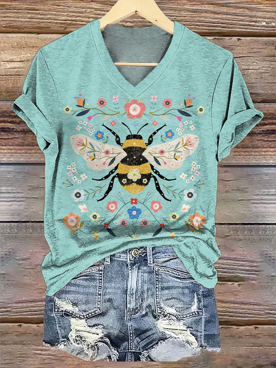 Women's Vintage Pattern Art Print V-Neck Casual T-Shirt
