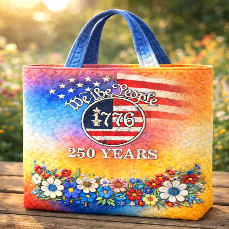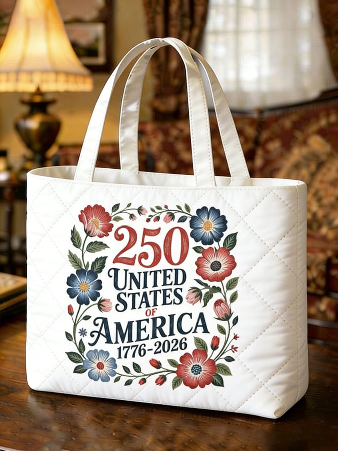 US 250th Anniversary Floral Art Casual Quilted Tote Bag