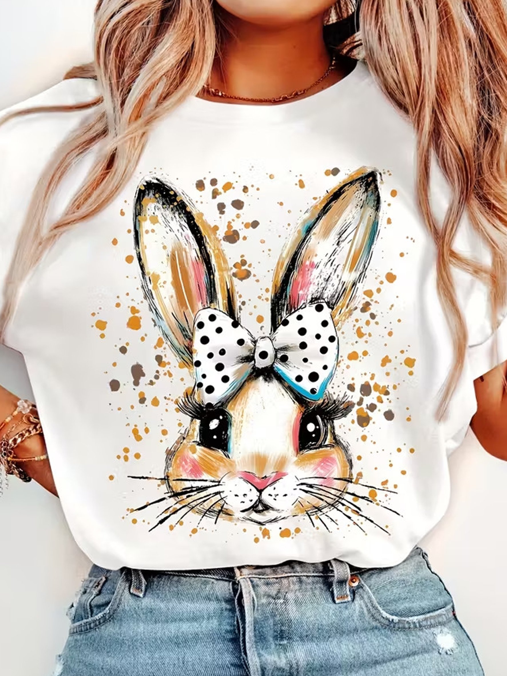 3D Printing Easter Rabbit Crew Neck Short Sleeve Casual T-Shirt