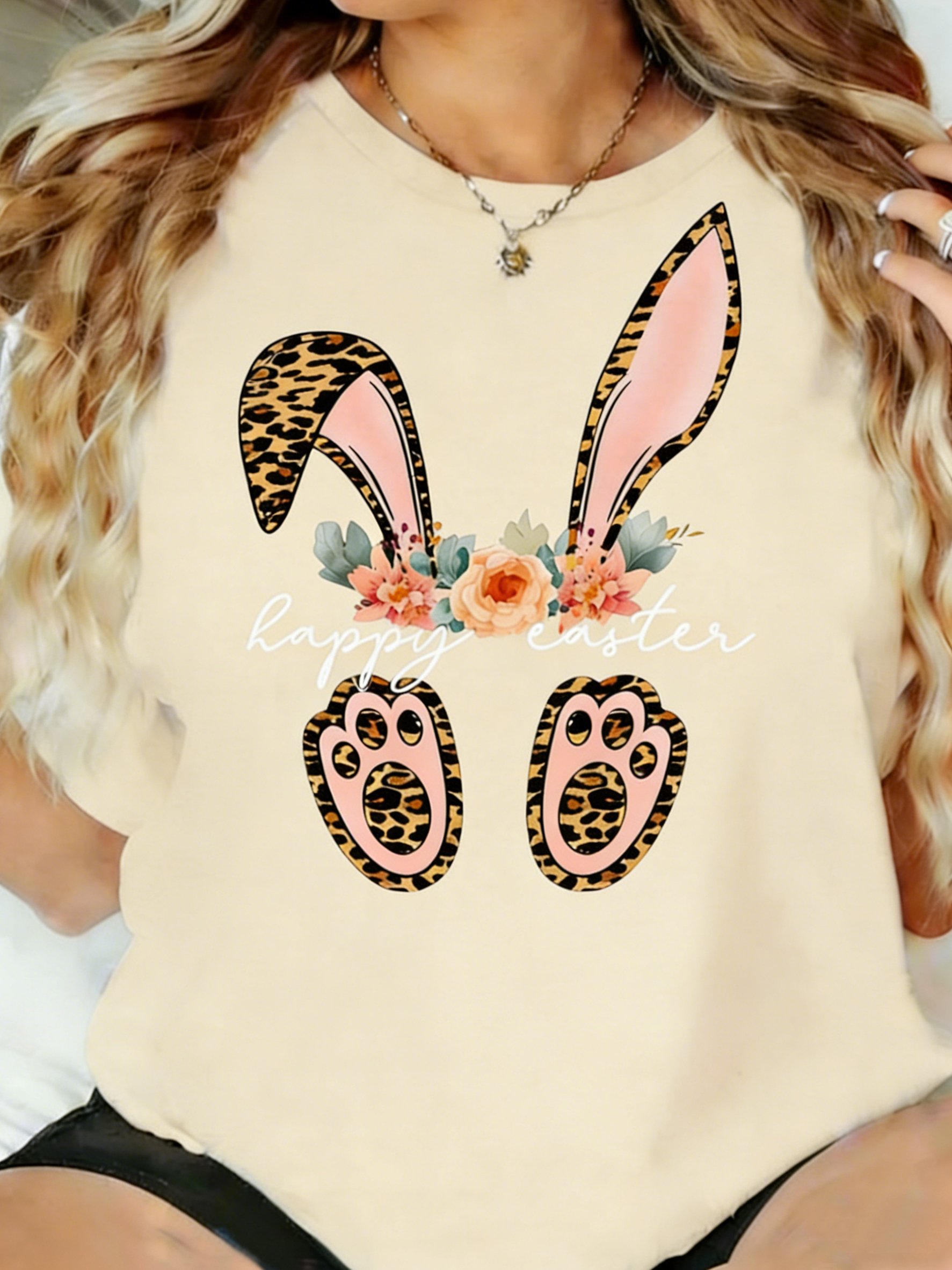 3D Printing Easter Rabbit Crew Neck Short Sleeve Floral Casual T-Shirt
