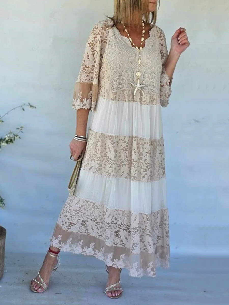 Flower BORDADO Long Sleeves Casual Bohemia Cover-Ups Dress
