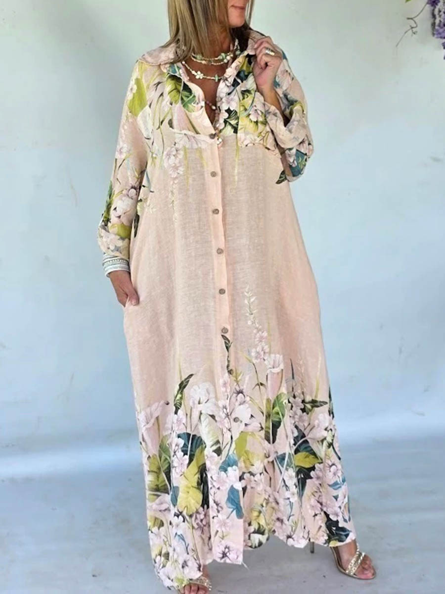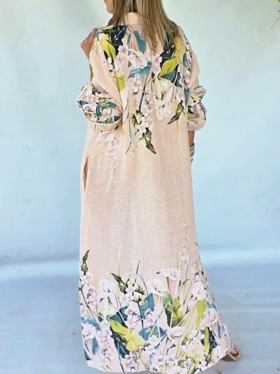 Flower Printed Long Sleeves Casual Bohemia Cover-Ups Shirt Dress