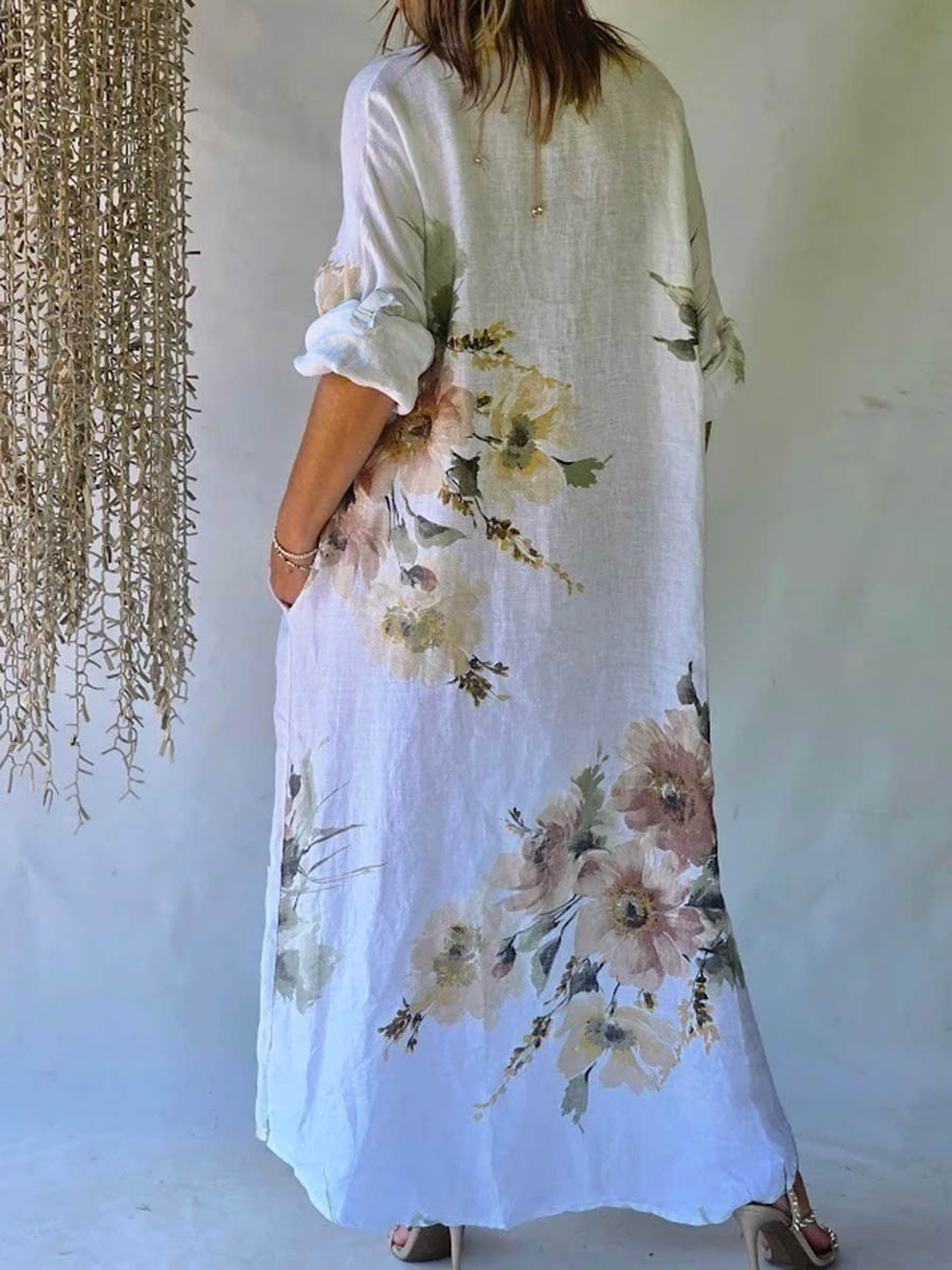Flower Printed Long Sleeves Casual Bohemia Cover-Ups Shirt Dress