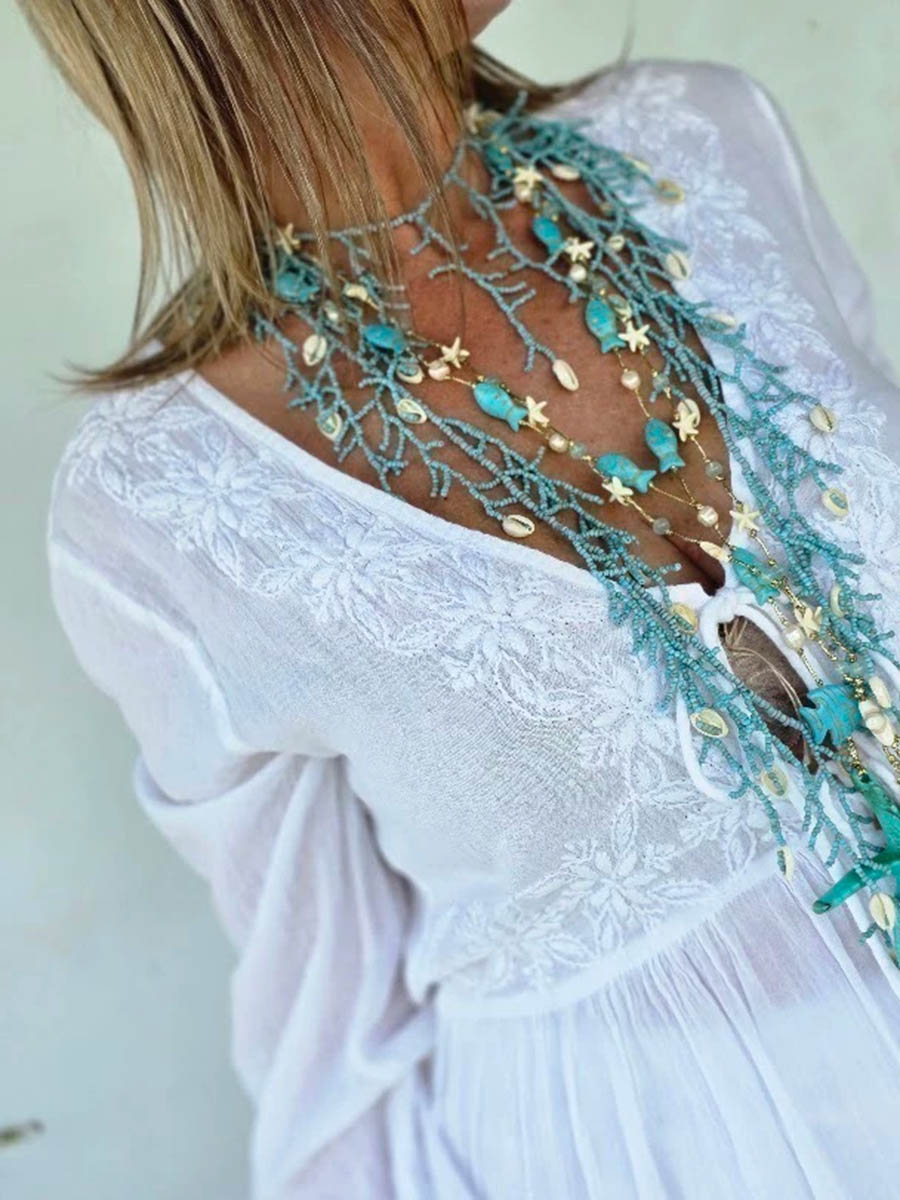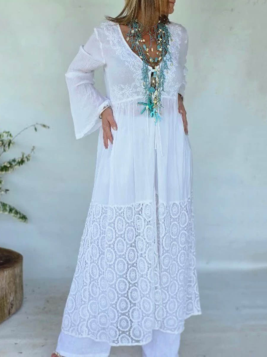 flower printed Long Sleeves casual bohemia cover-ups shirt dress