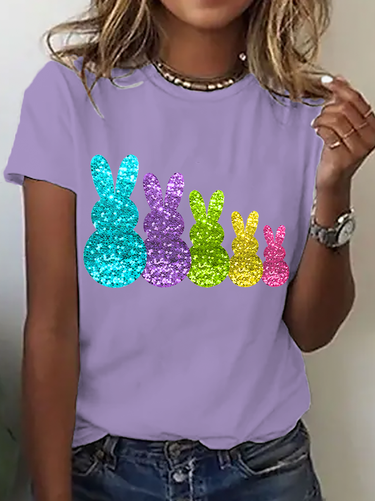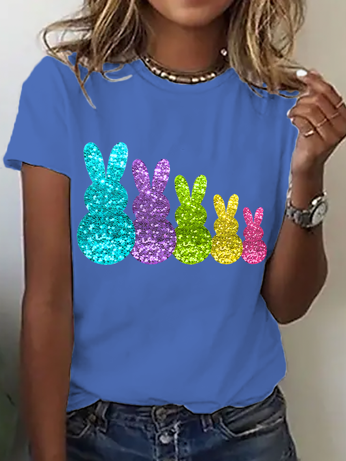 Glitter Bunny Hoppy Easter Cotton T-Shirt
