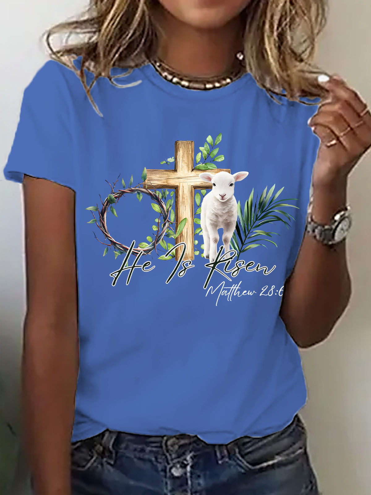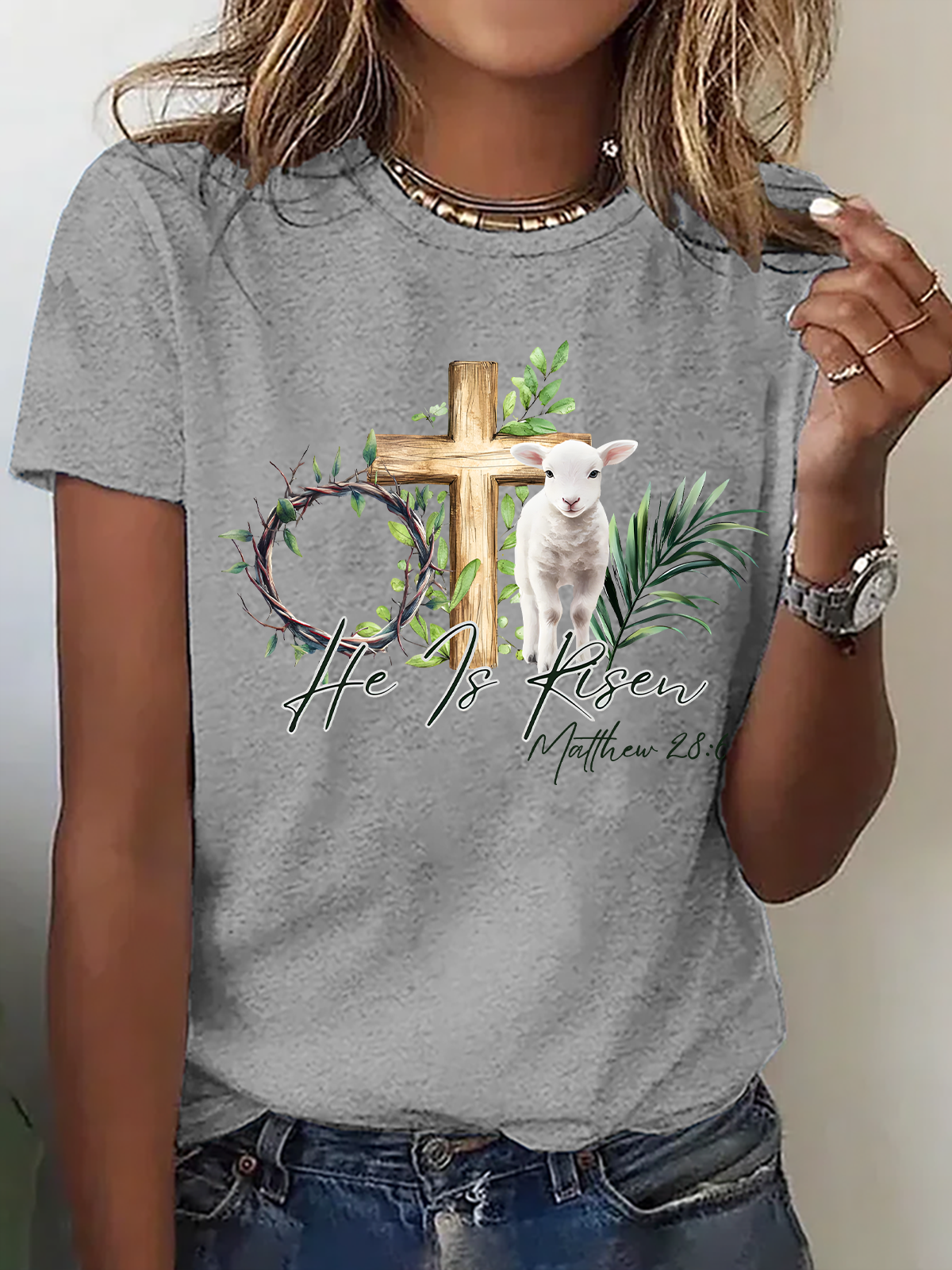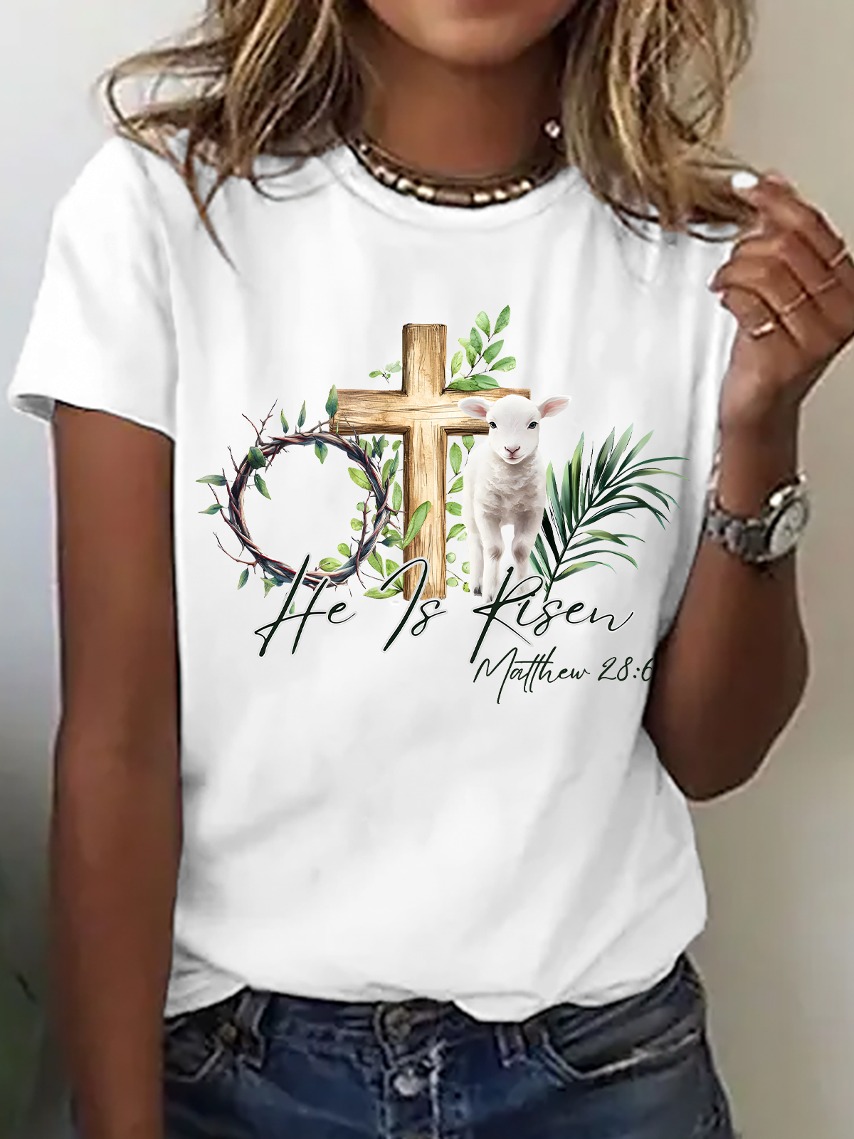 He Is Risen Easter Lamb Cross Christian Bible Verse Cotton T-Shirt