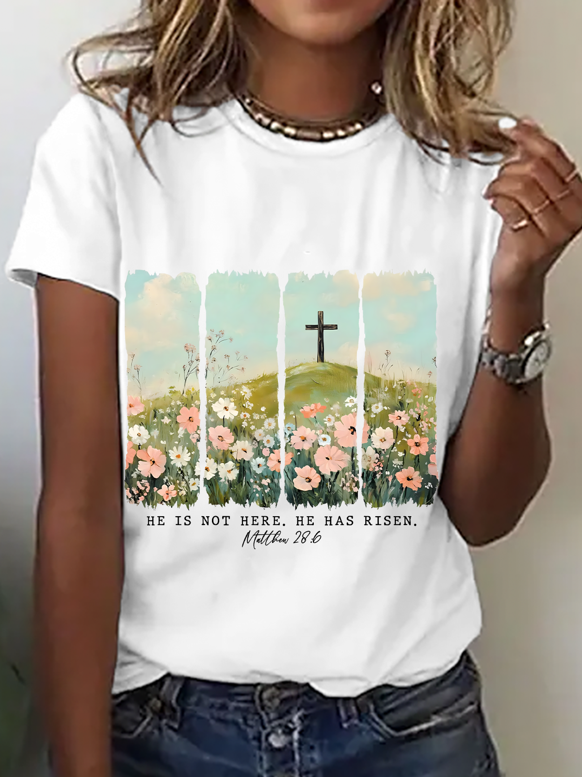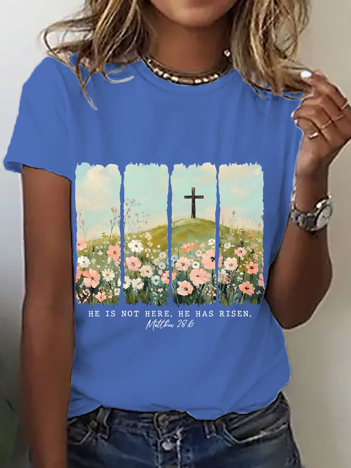 He Is Risen Png Wildflower Spring Easter Cotton T-Shirt