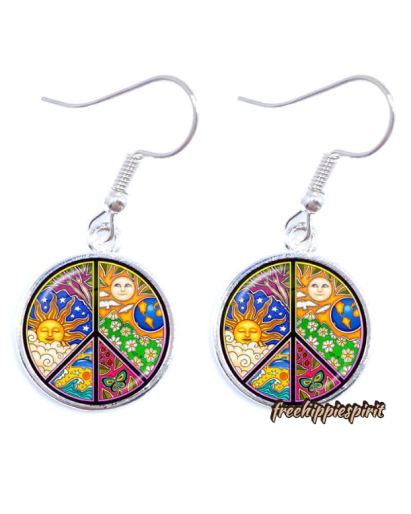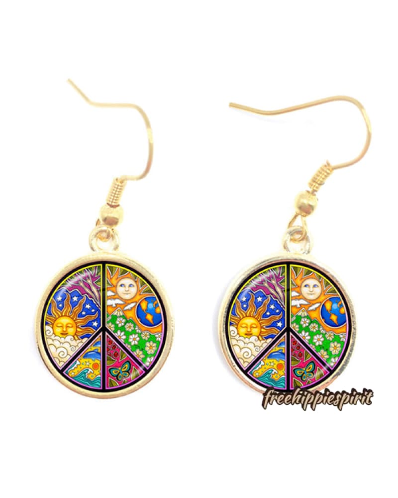 Hippie Psychedelic Moon And Stars Art Pattern Earrings