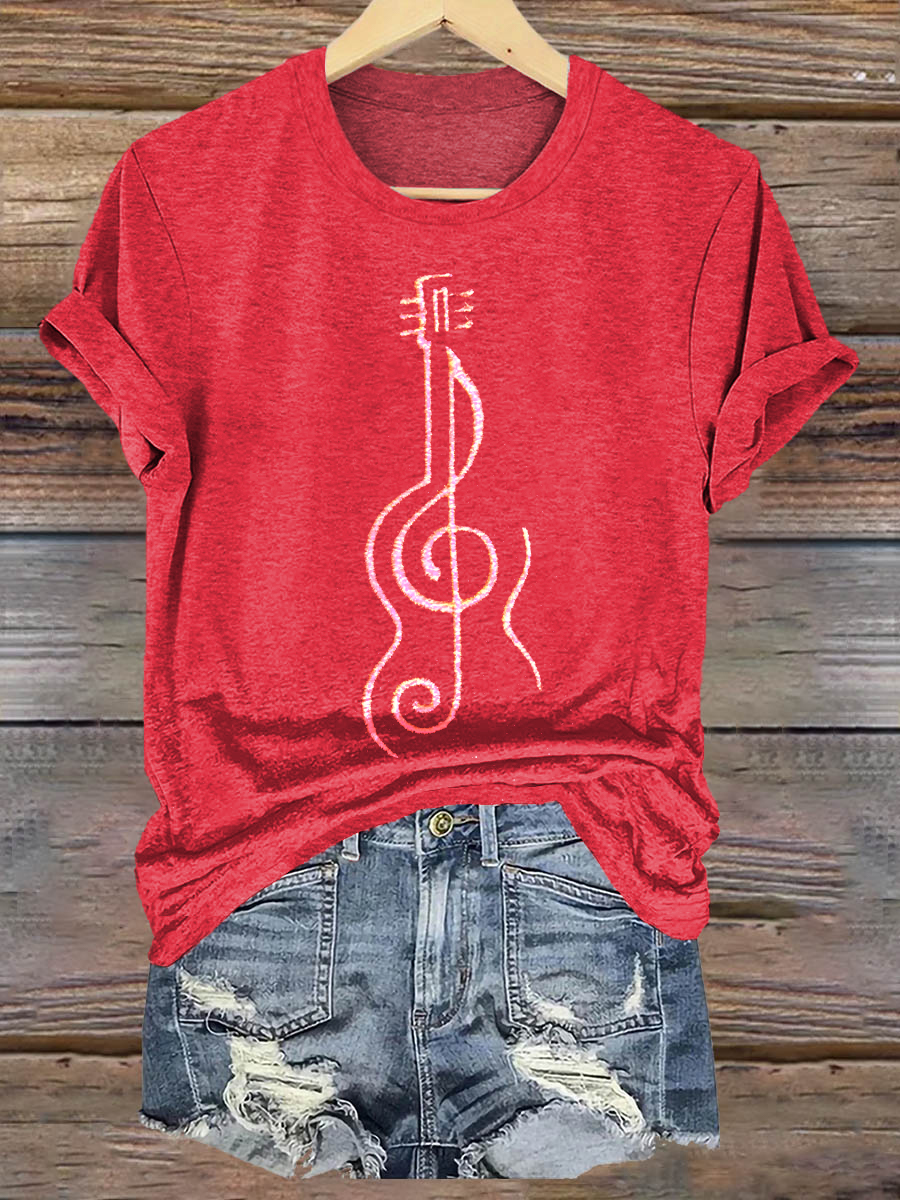 Hippie Violine Art Print Casaul Short Sleeve T-shirt