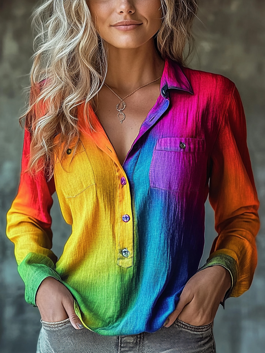 LGBT Gay Rainbow Gradient Pride Month Cotton and Linen Long Sleeve Shirt