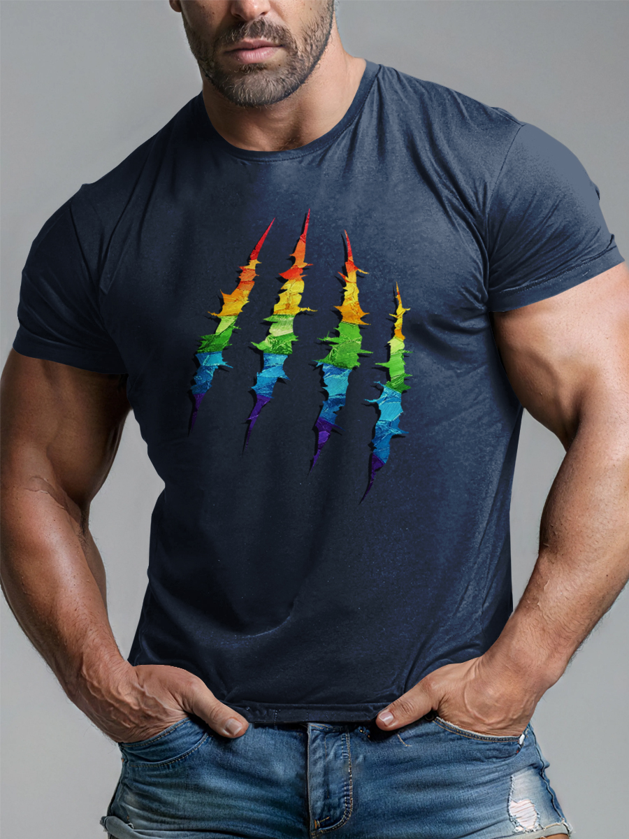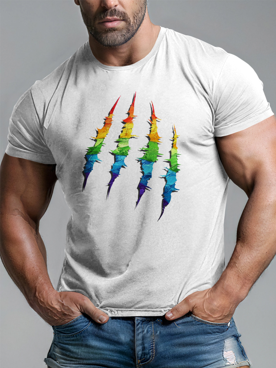 LGBT Rainbow Bear Paw Print Pride Month Casual Print T-shirt