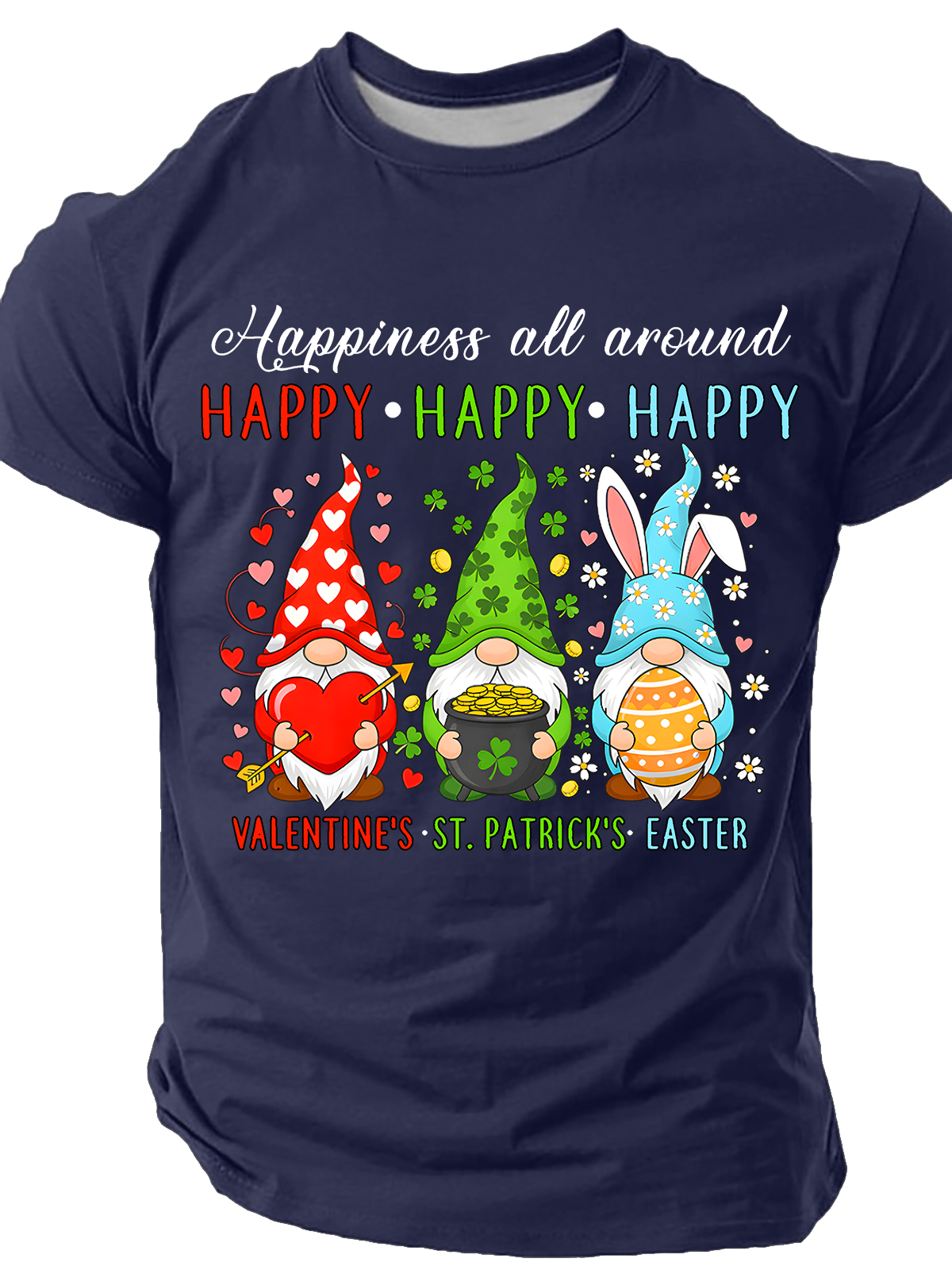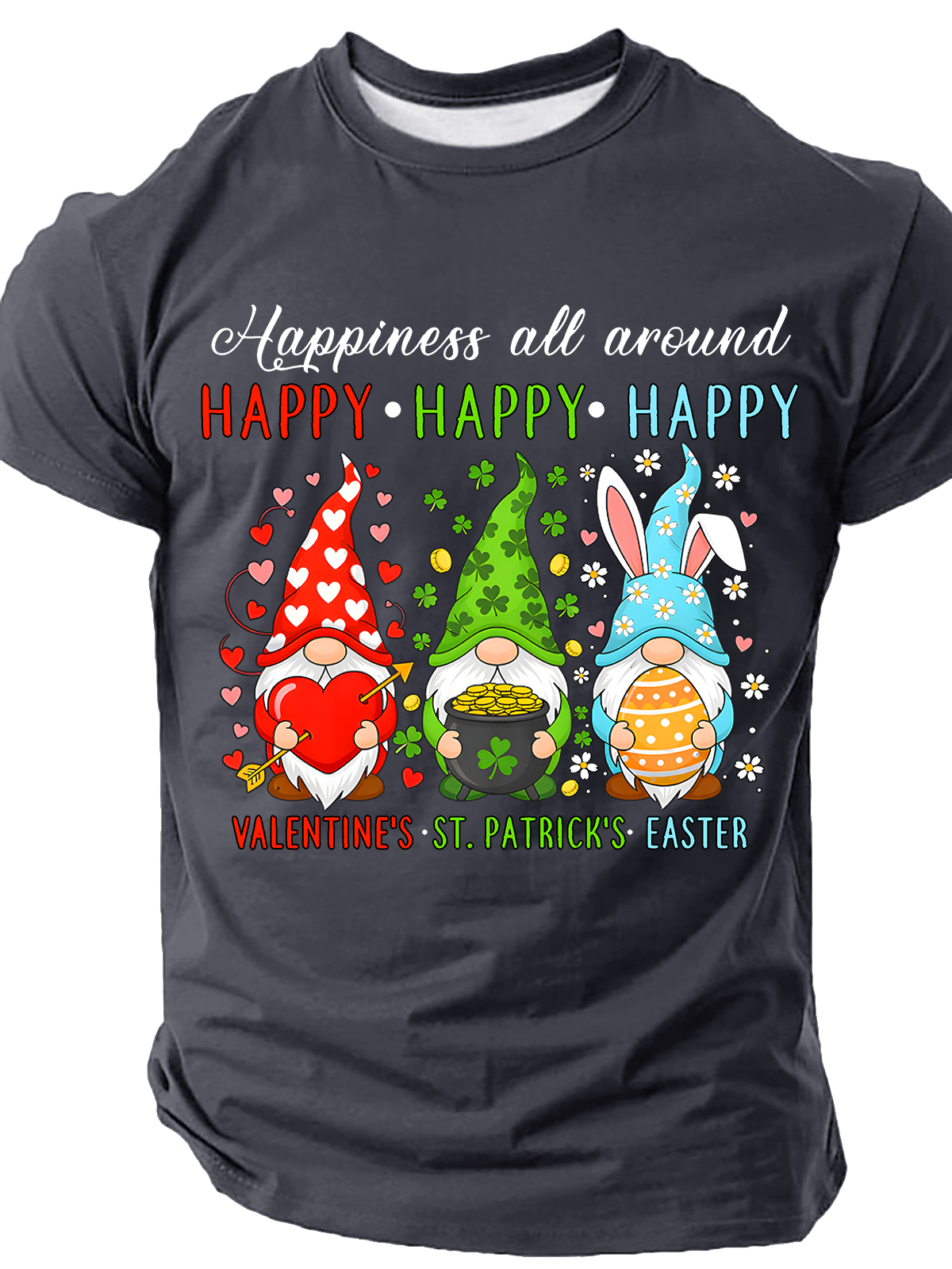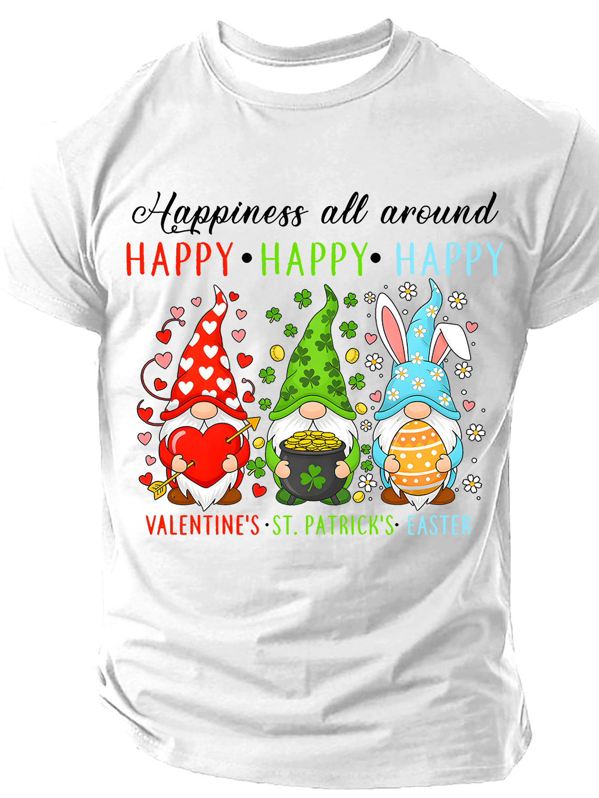 Men's Happy Valentines St Patrick Easter Happy Holiday Gnome Funny Short Sleeve T-shirt