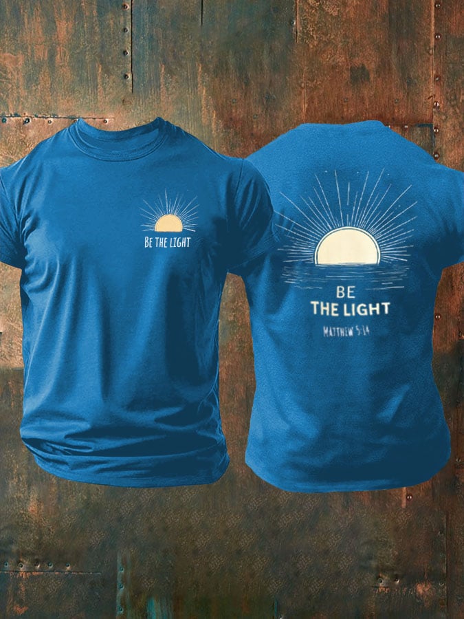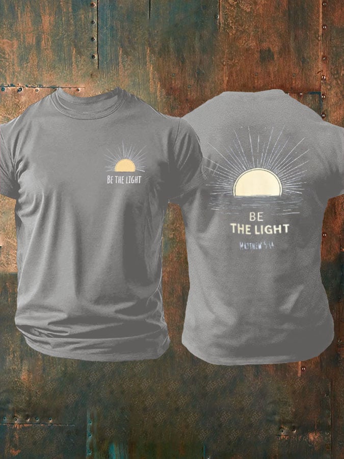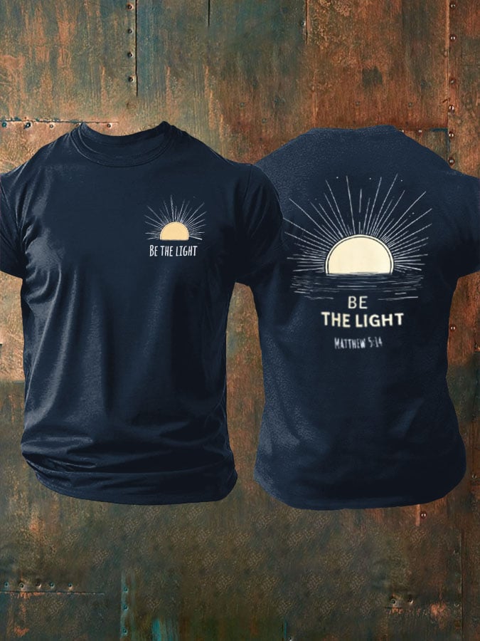 Men's Be The Light Mathew 5:14 Front and Back Print T-Shirt