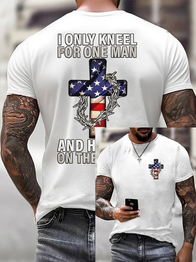 Men'S T-Shirt With "I Only Kneel For One Man" Faith-Inspired Print.