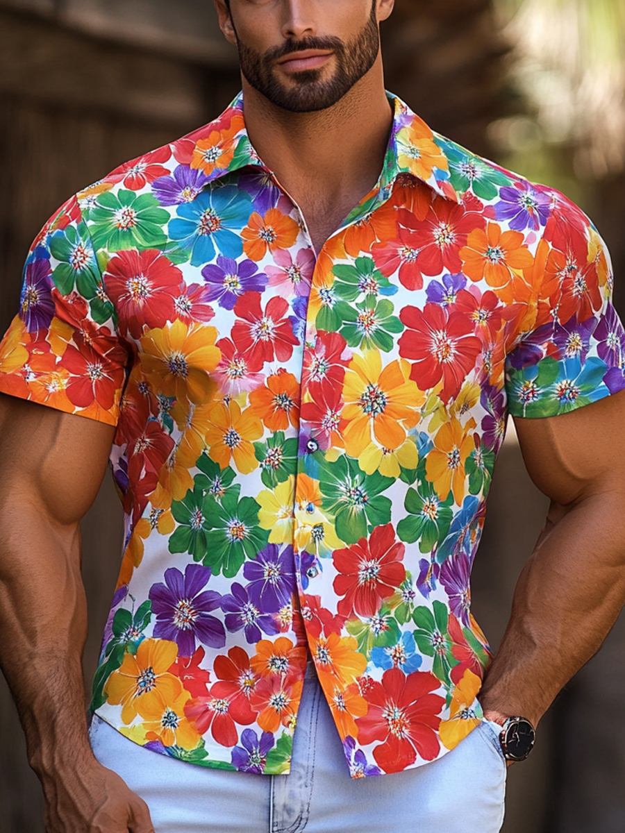 Pride Month LGBT Rainbow Floral Art Print Casual Shirt