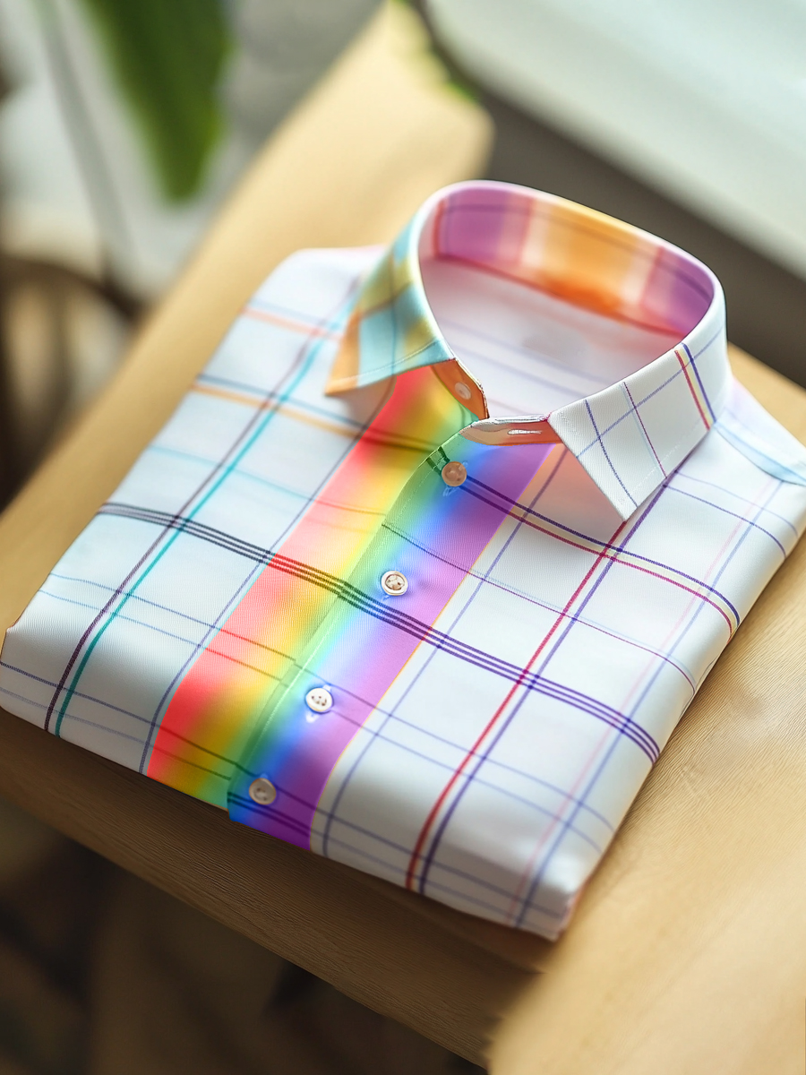 Rainbow Check Art Casual Button-Down Shirt