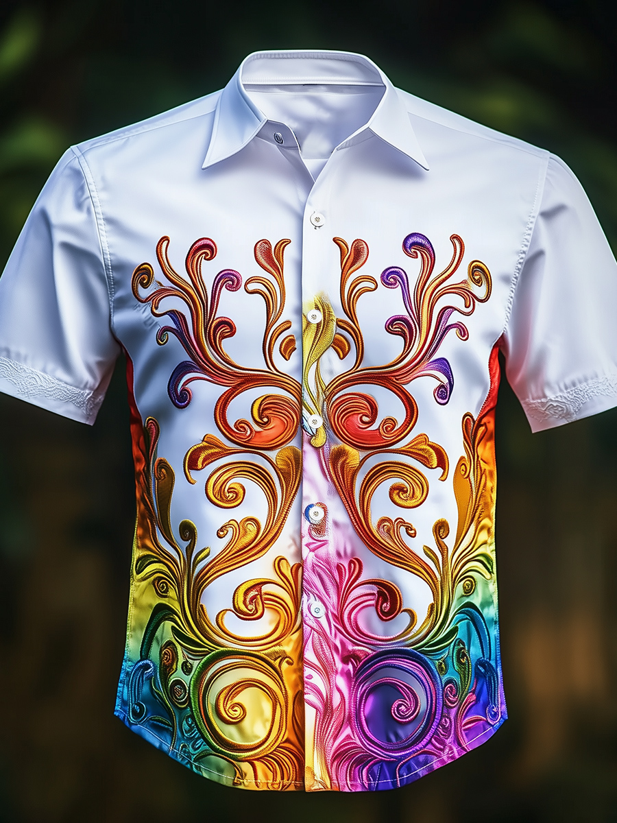Rainbow Gradient Baroque Art Print Casual Short Sleeve Shirt