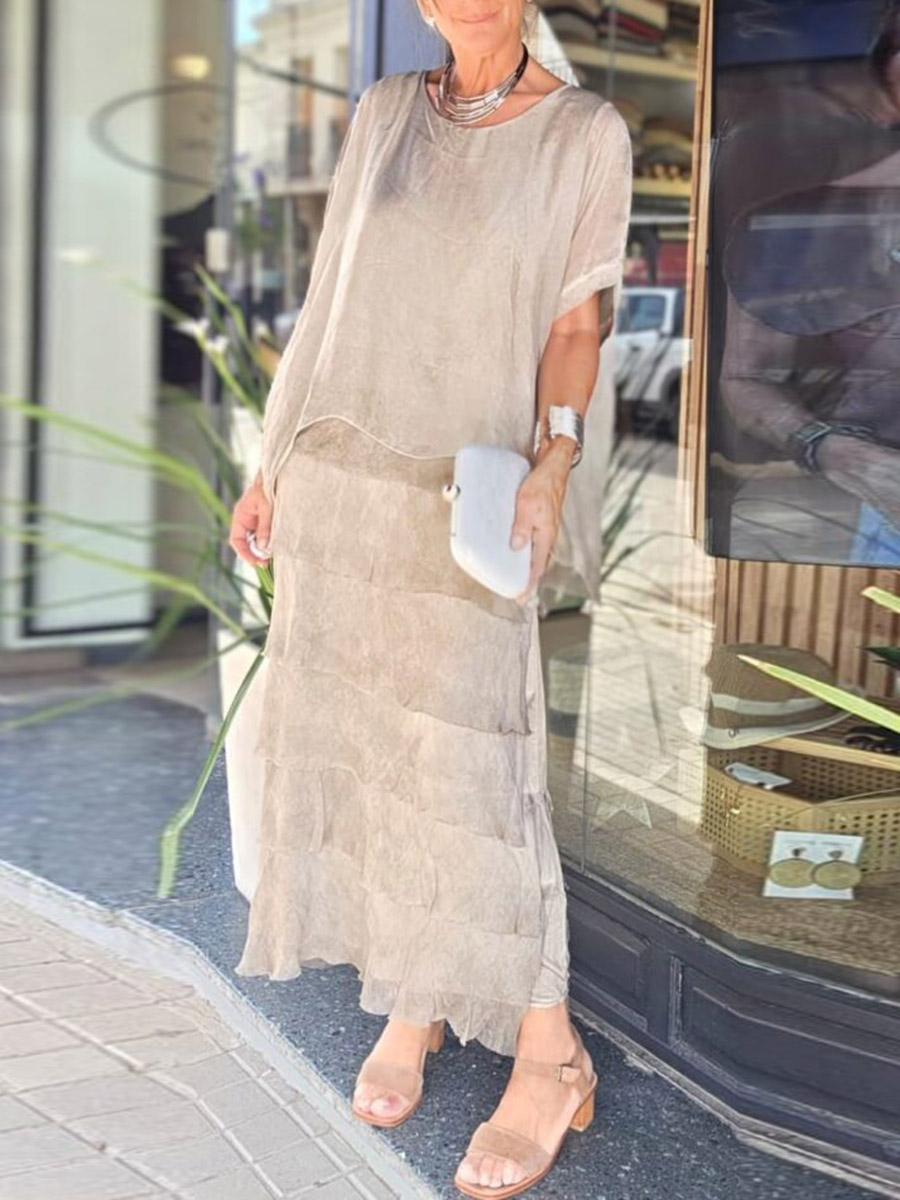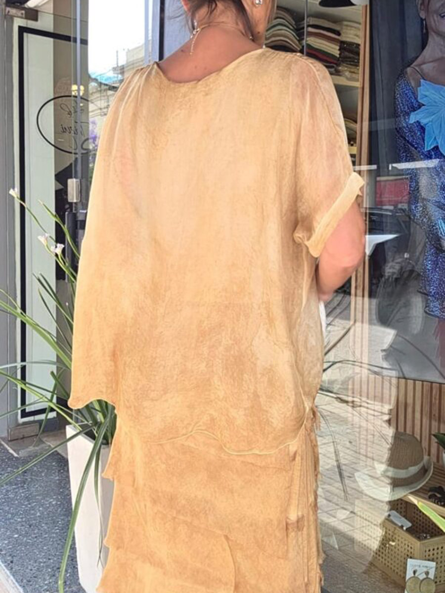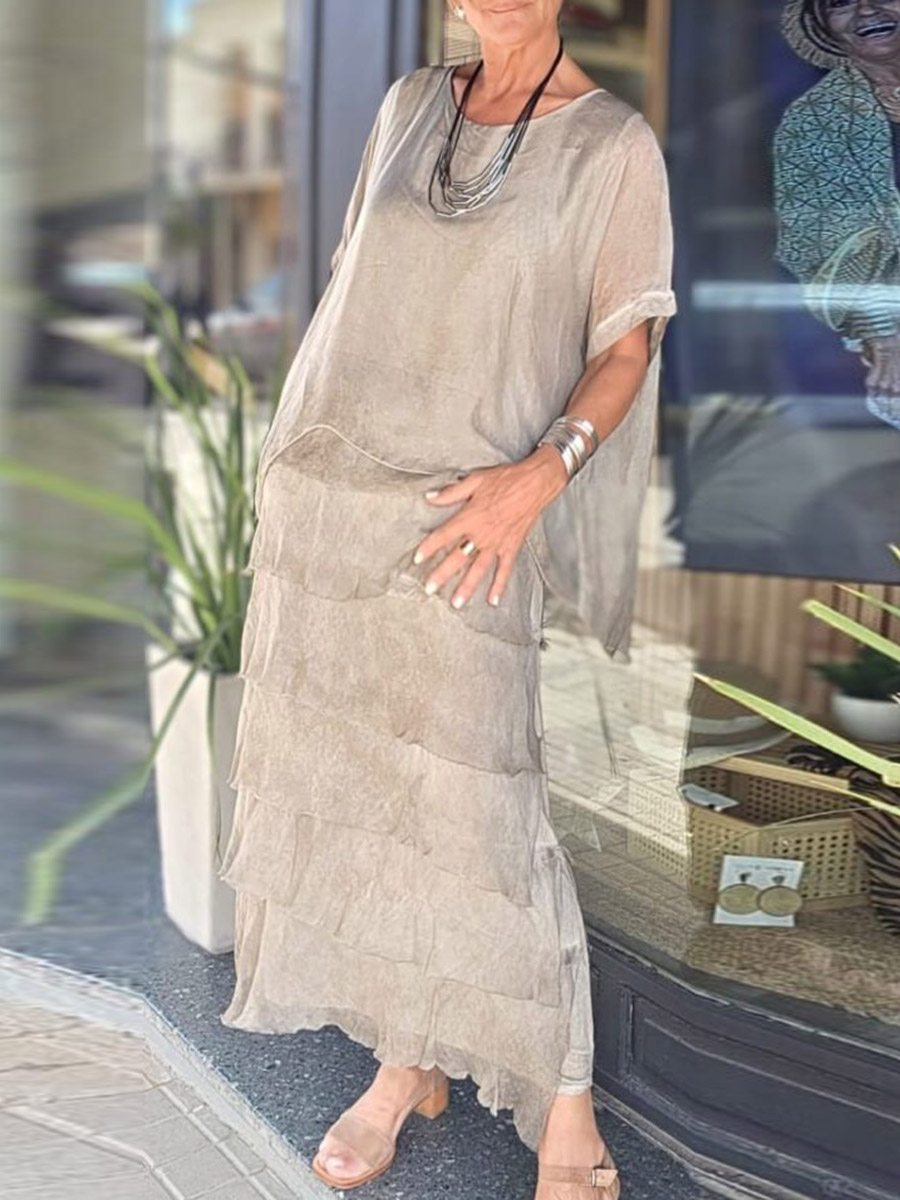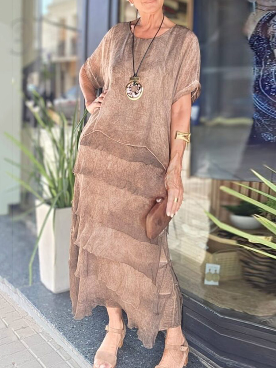Solid Color Irregular Short Sleeves Bohemia Maxi Dresses