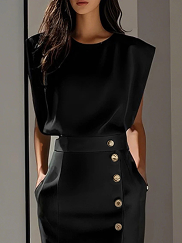 This top is a perfect blend of sophistication and modernity. Crafted from high - quality fabric, it offers a luxurious feel against the skin, ensuring comfort throughout the day. The round - neck design provides a classic and elegant look, suitable for various occasions, from office meetings to evening soirees. Its sleeveless cut not only keeps you cool but also adds a touch of contemporary flair, allowing you to showcase your arms with confidence.