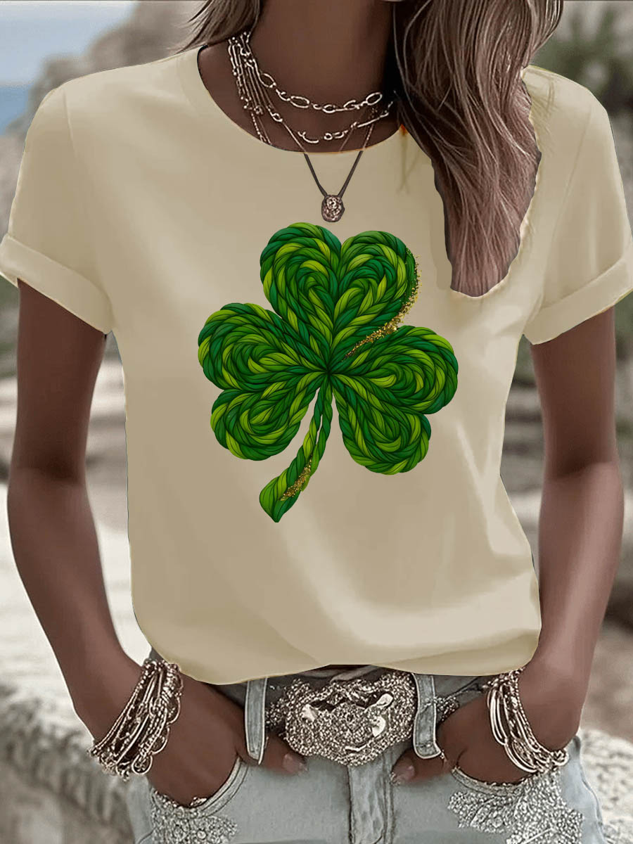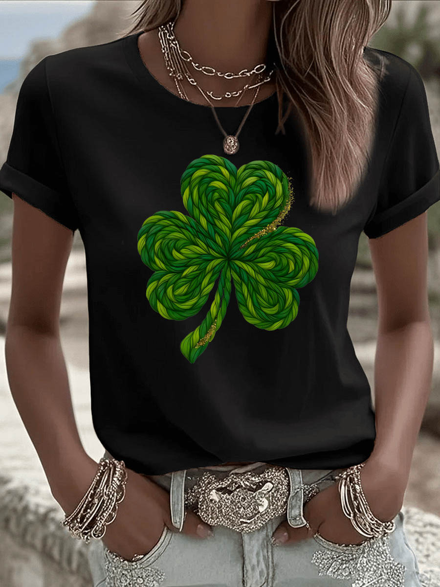 St. Patrick'S Day Pattern Clover Round-Neck 100% Cotton 180g T-Shirt