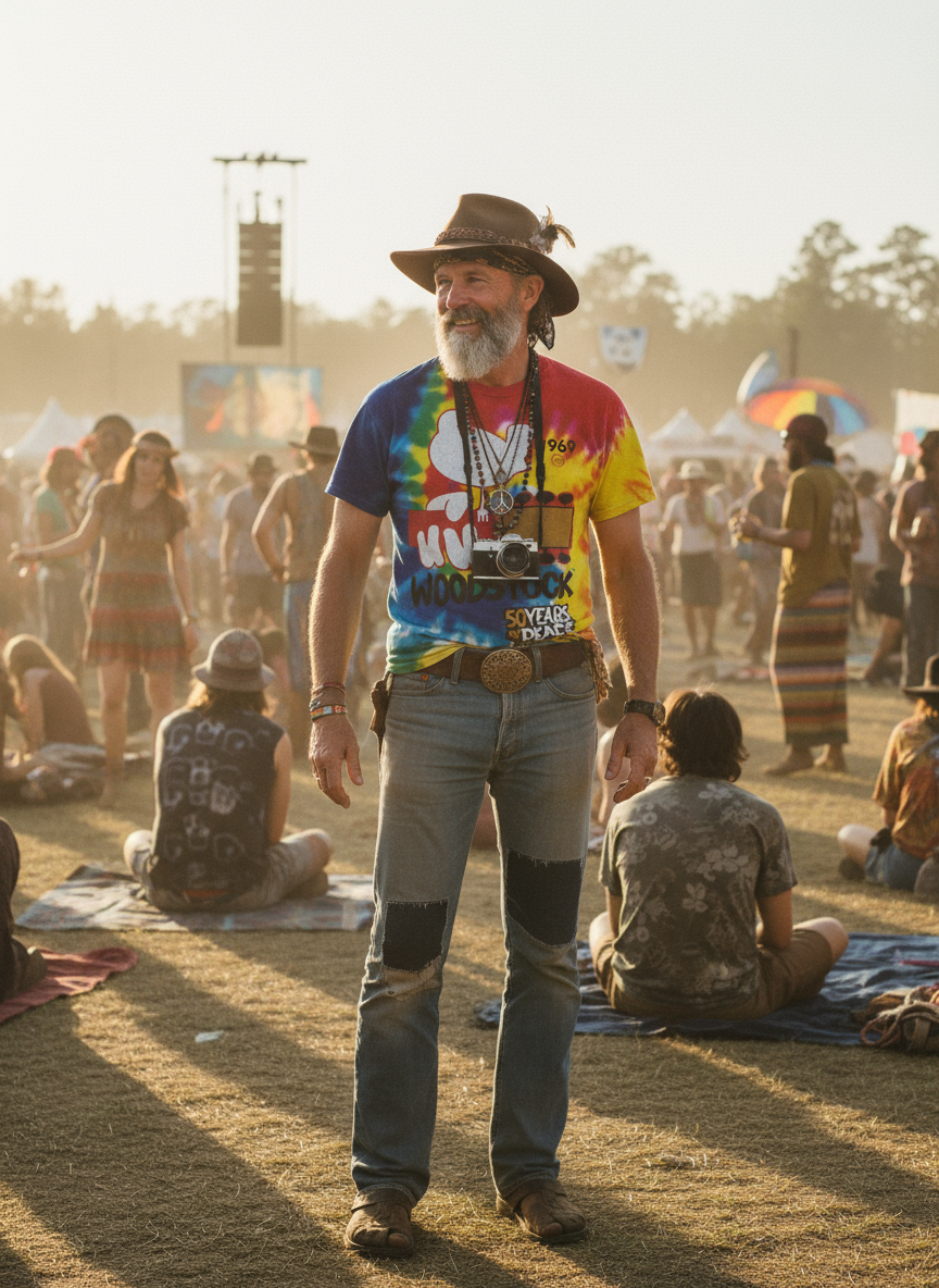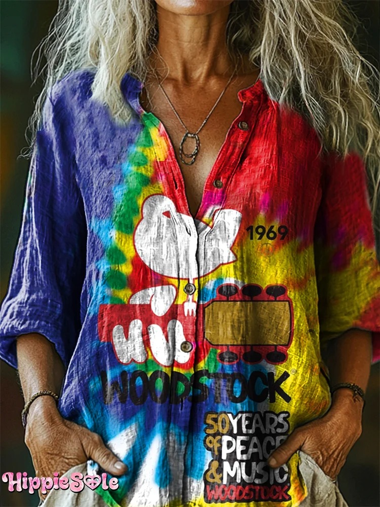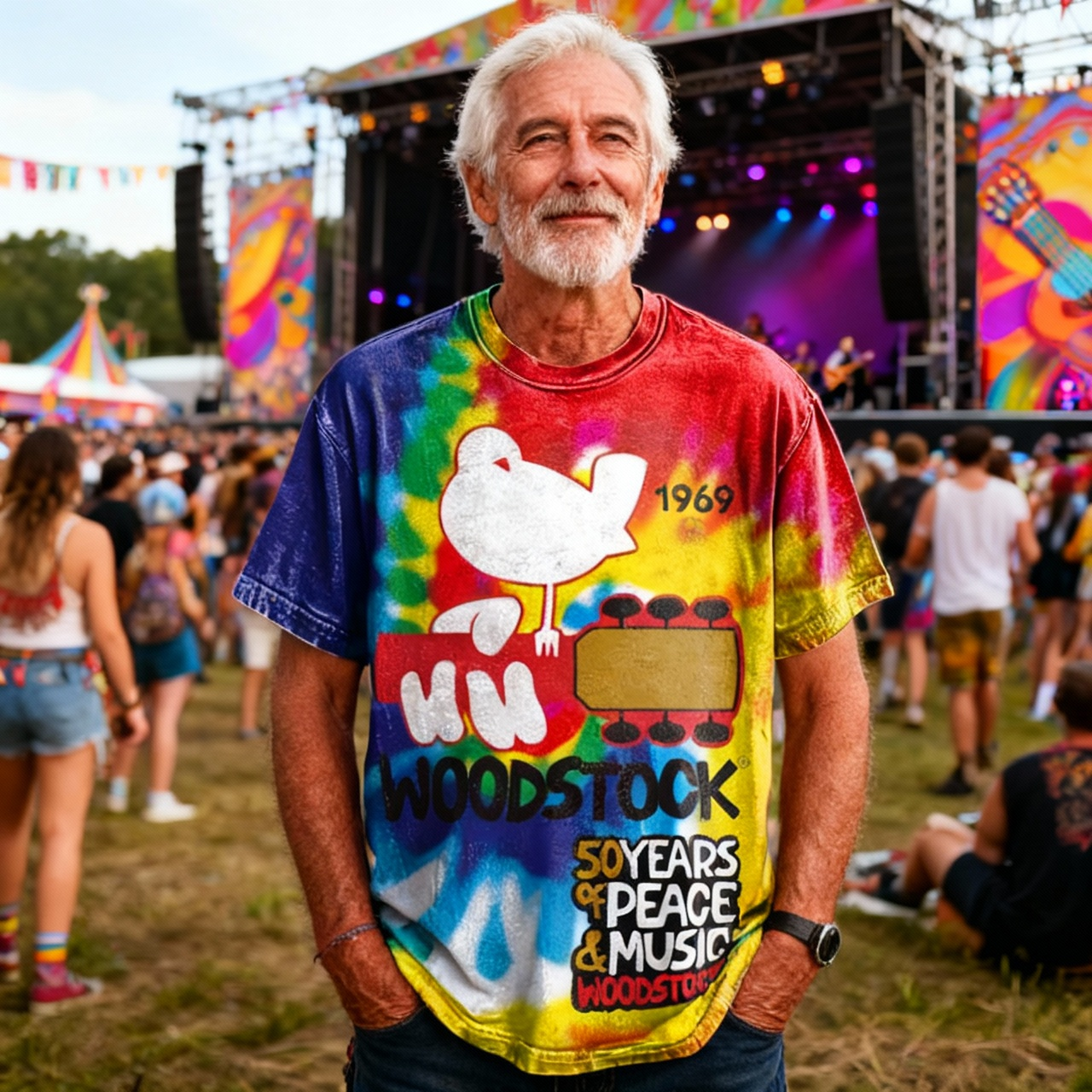 Unisex Woodstock 1969 Art Print Casual Loose Short Sleeve T-Shirt