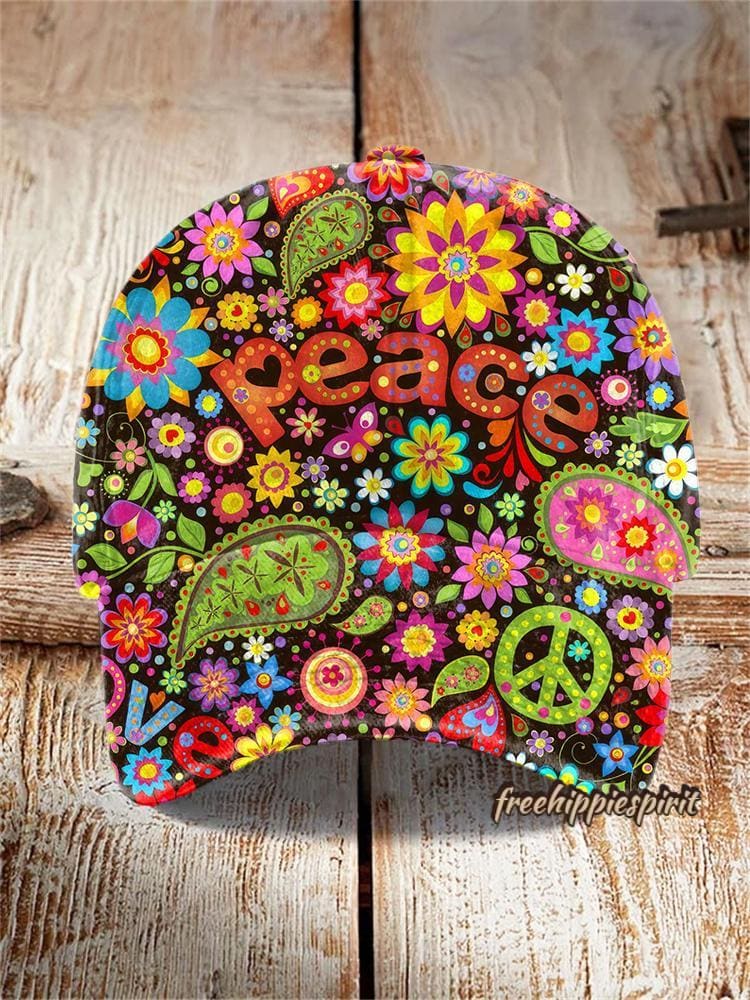 Vintage Hippie Peace Floral Print Hat