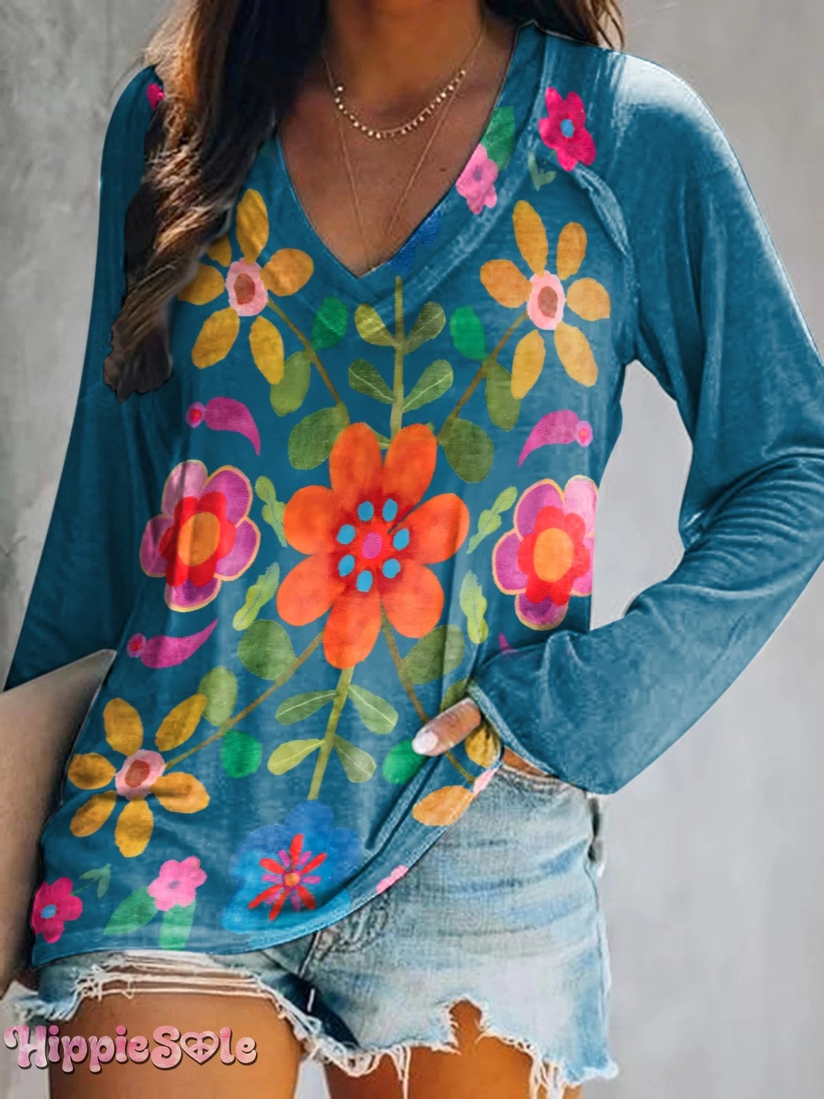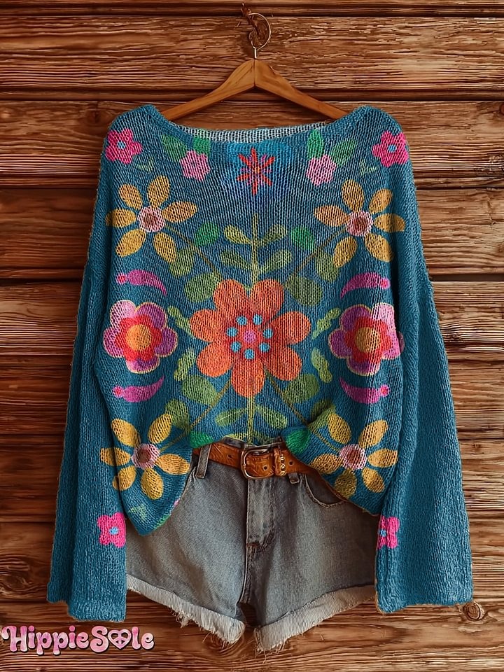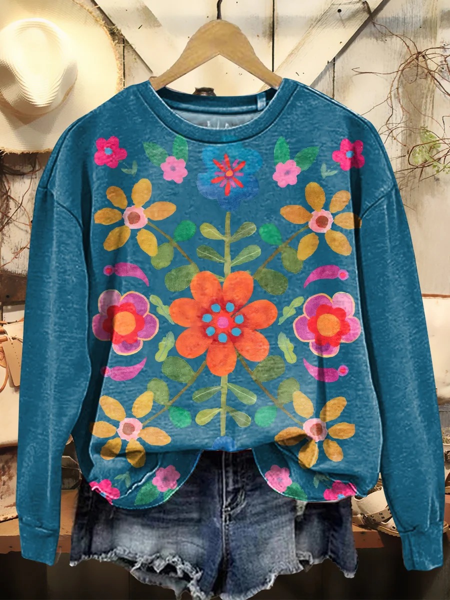 Women's Bohemian Floral Art Print V-neck Casual T-Shirt