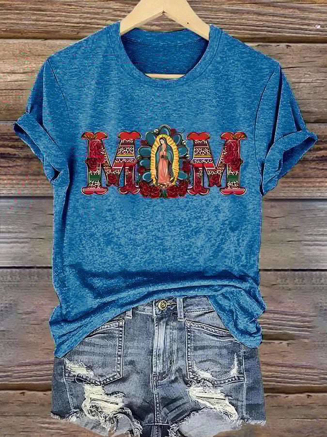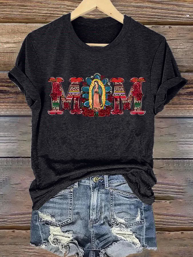Women'S Casual Sacred Mother Faith Print Short-Sleeved T-Shirt