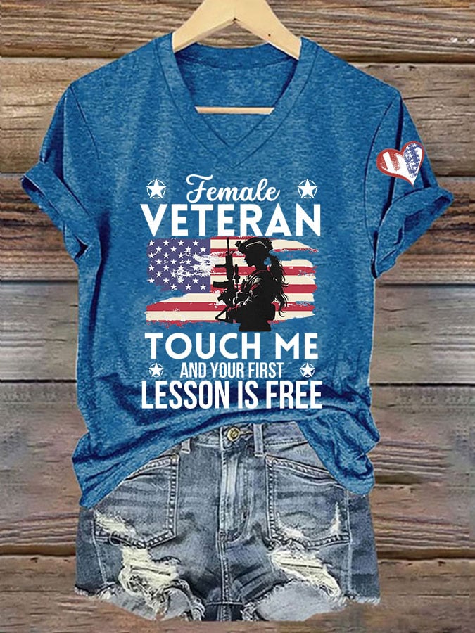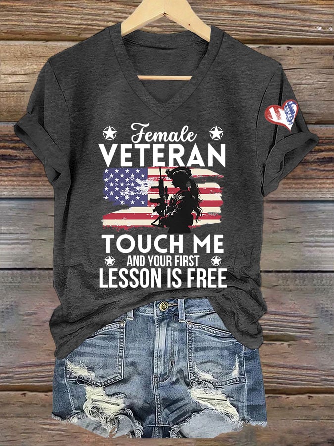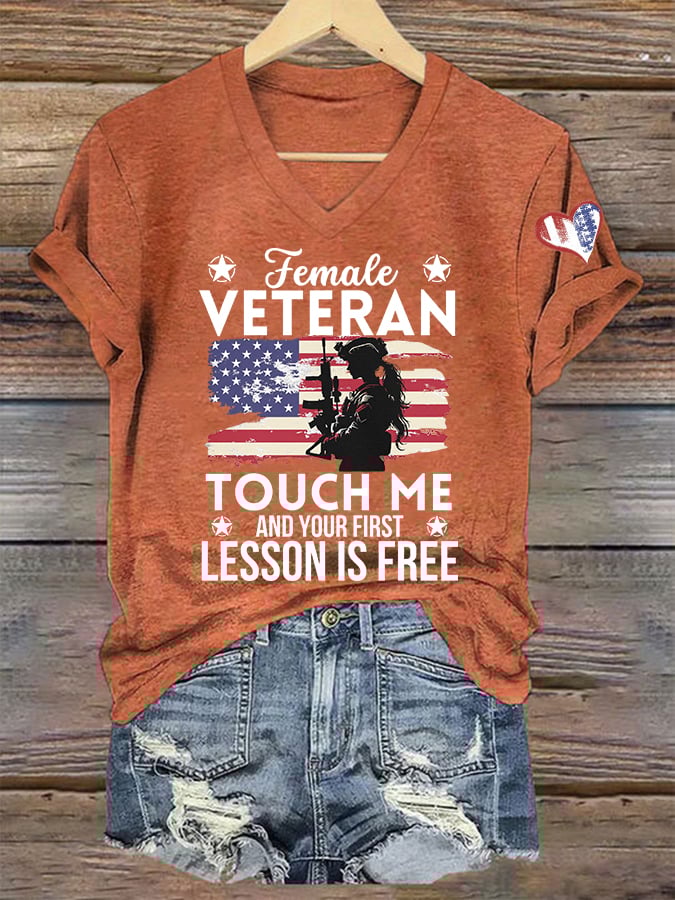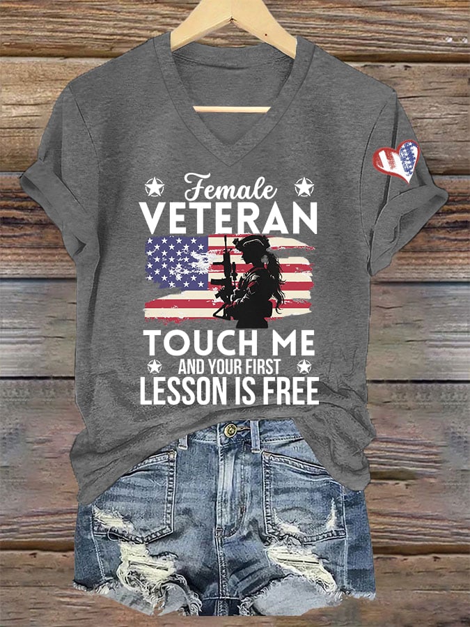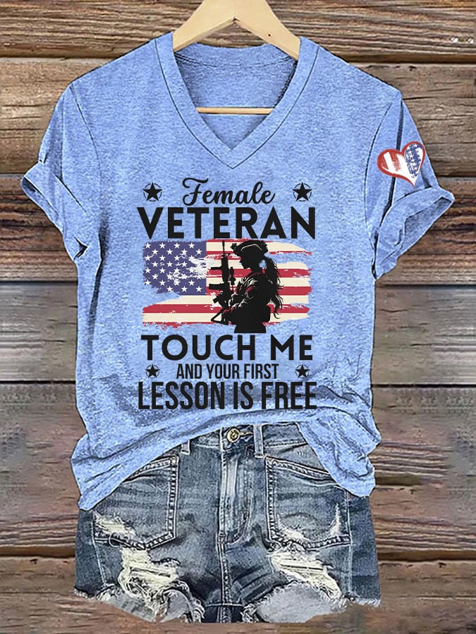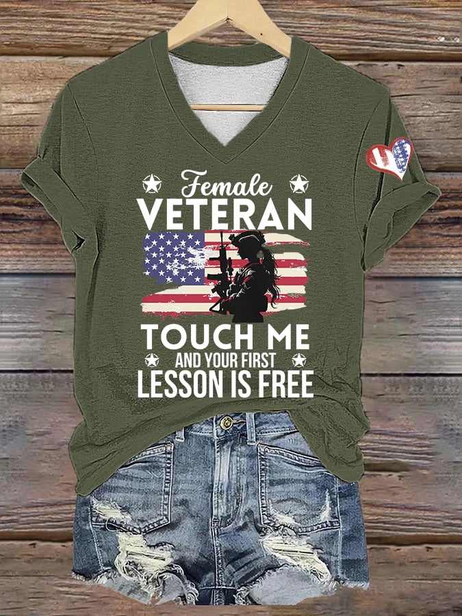 Women's Funny Female Veteran Printed V-Neck T-Shirt