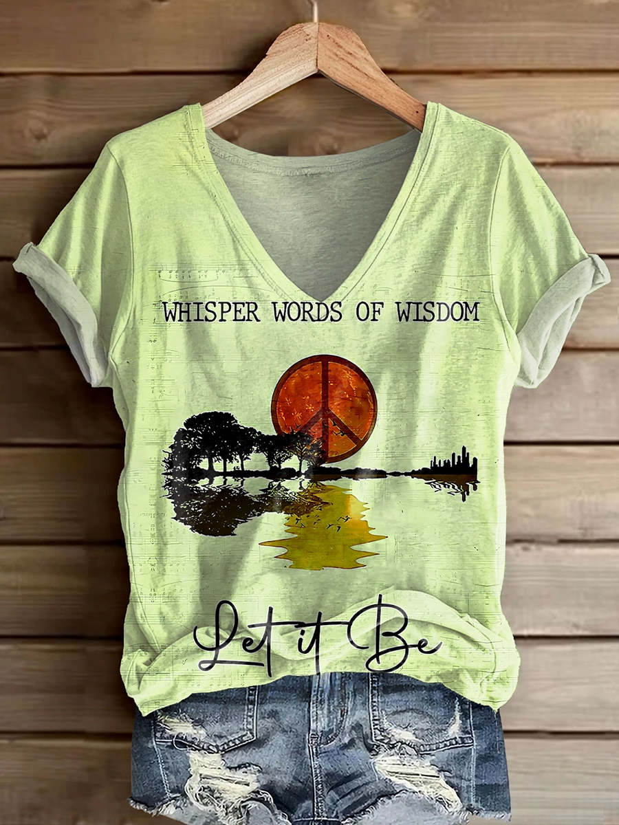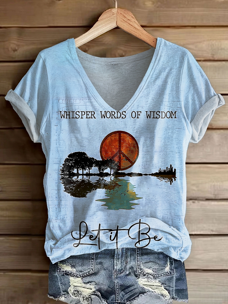 Women's Hippie Whisper Words Of Wisdom Print V-neck Casual T-Shirt