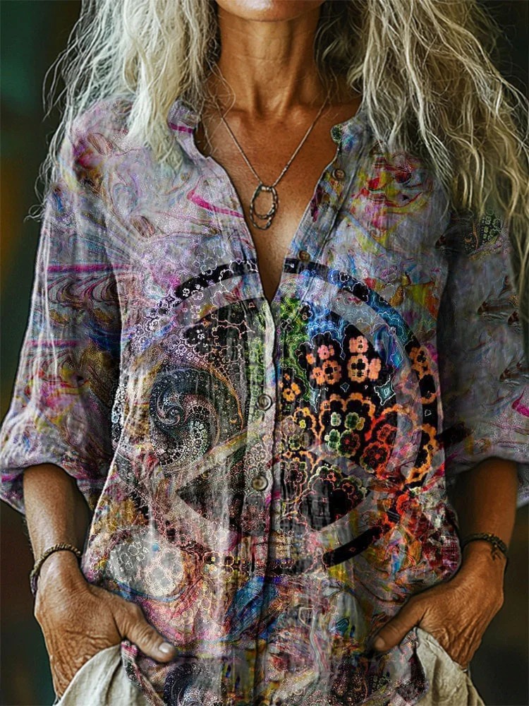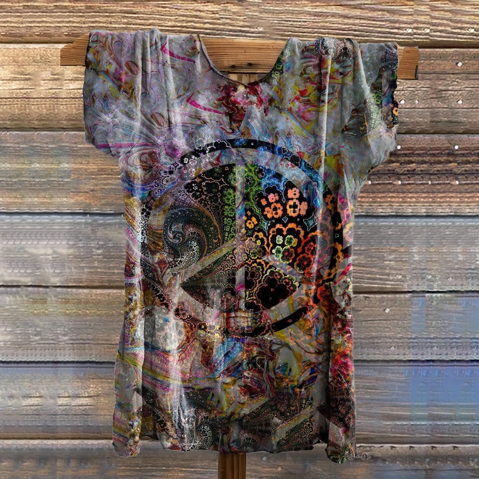 Women's Hippy Art Print V-Neck Casual T-Shirt